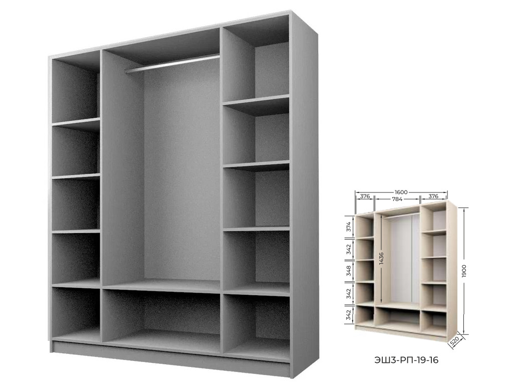 Комплект: ЭШ3-РП-19-16, Шкаф для Одежды + четыре ЗС-19,Зеркало для шкафов ЭШ 1900 мм