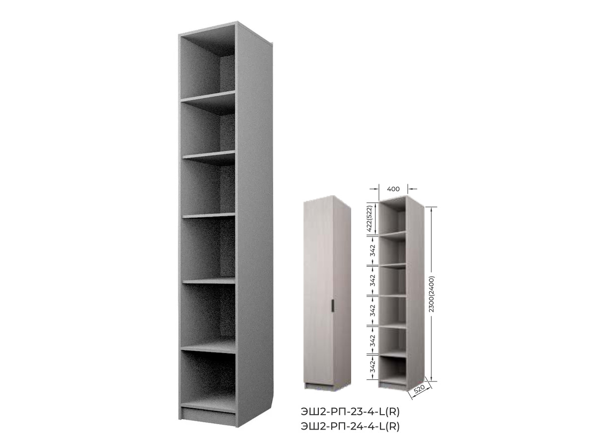 Комплект: ЭШ2-РП-23-4-R,Шкаф для Одежды + ЗС-23,Зеркало для шкафов ЭШ 2300 мм