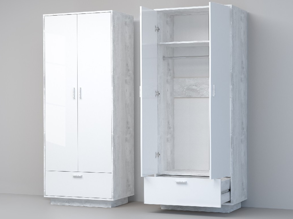 - Шкаф Эго ШК-1 бетон светлый/белый глянец на цоколе