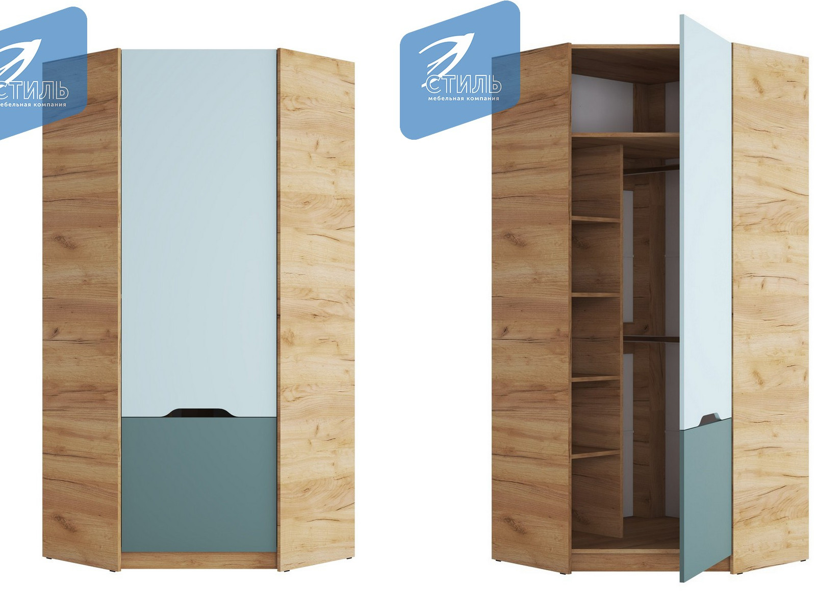 Цвет: корпус - дуб крафт золотой фасад лдсп - мята / сумеречный голубой