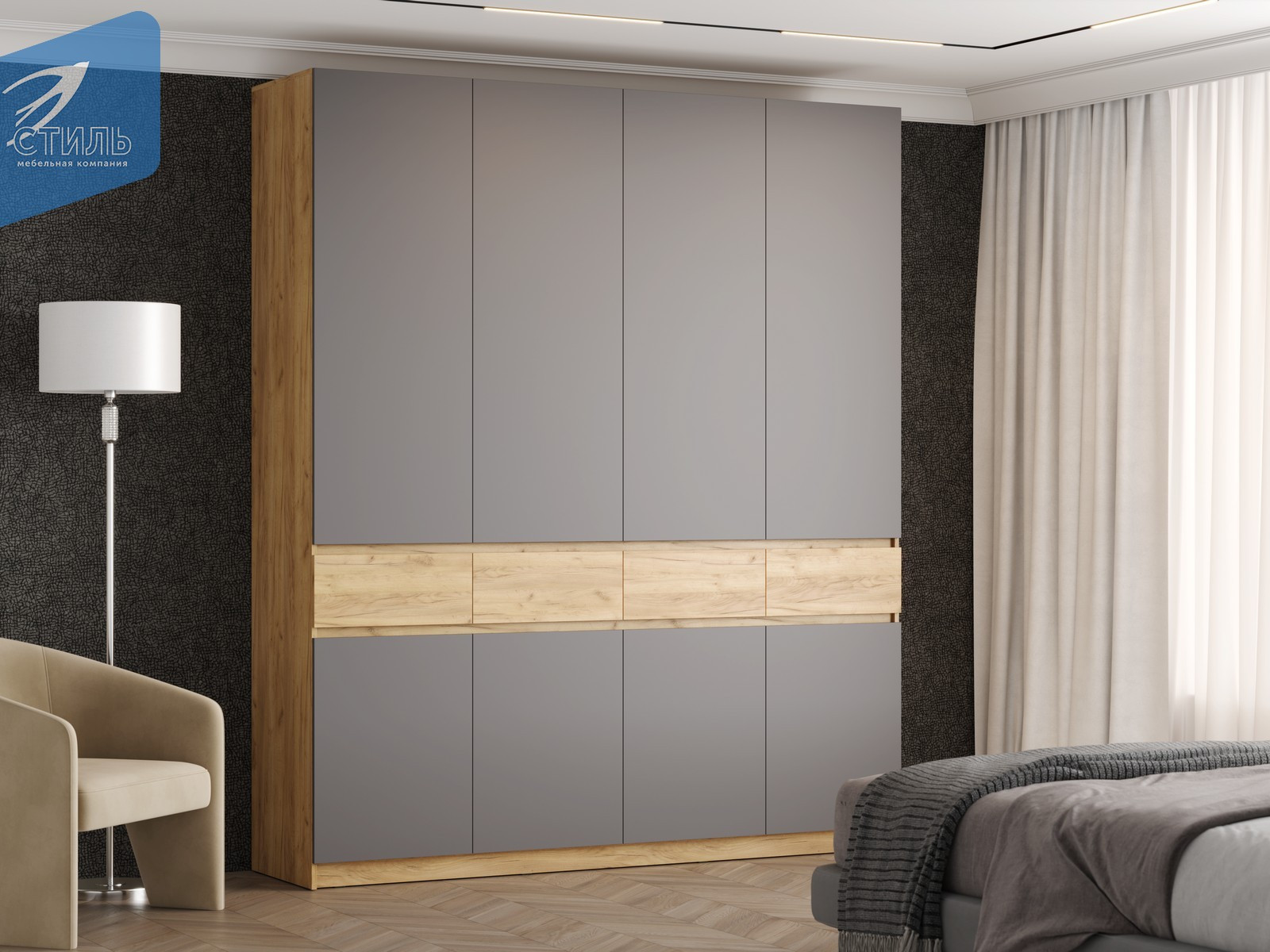 - корпус - дуб крафт золотой фасад лдсп - серый шифер / дуб крафт золотой