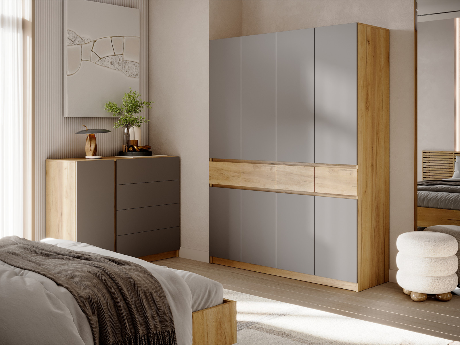 - Шкаф ШК-004 ЛДСП Бостон Лайт Фасад серый шифер