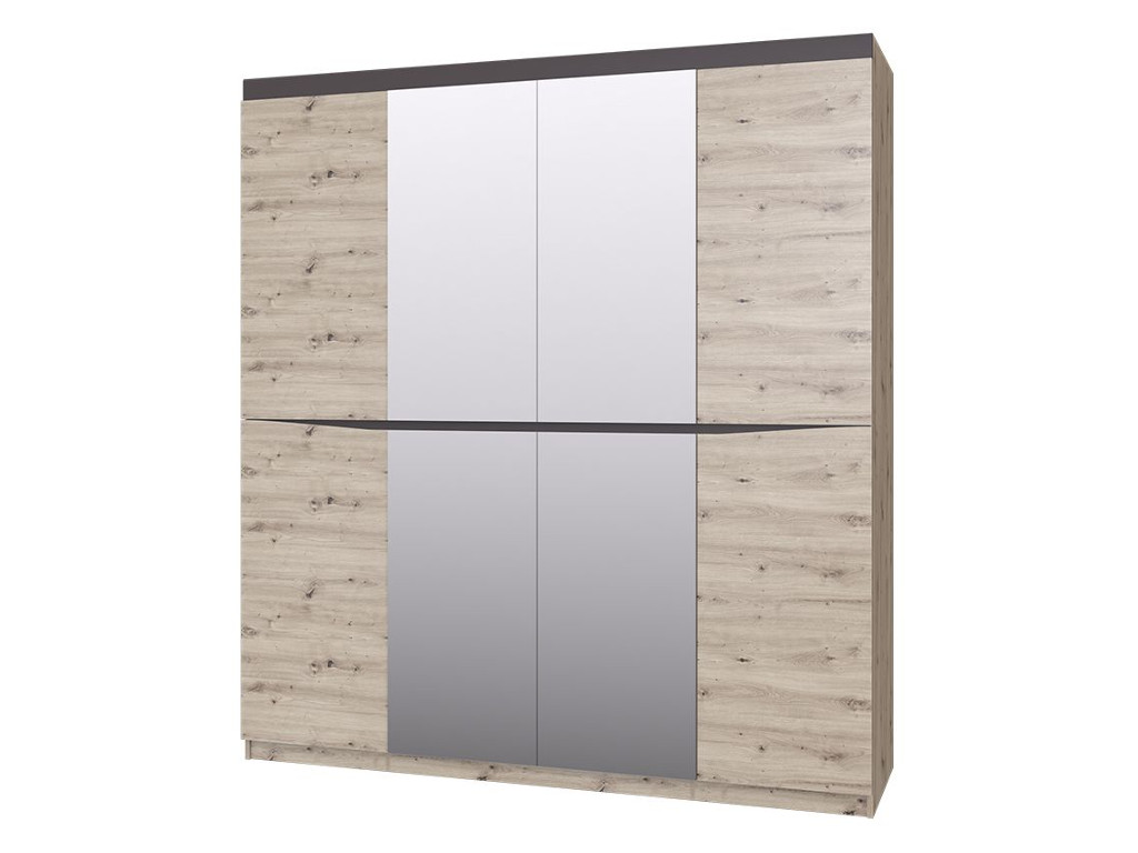 - Шкаф ШР-4 с зеркалом Тиана Дуб Бонифаций/Вольфрам