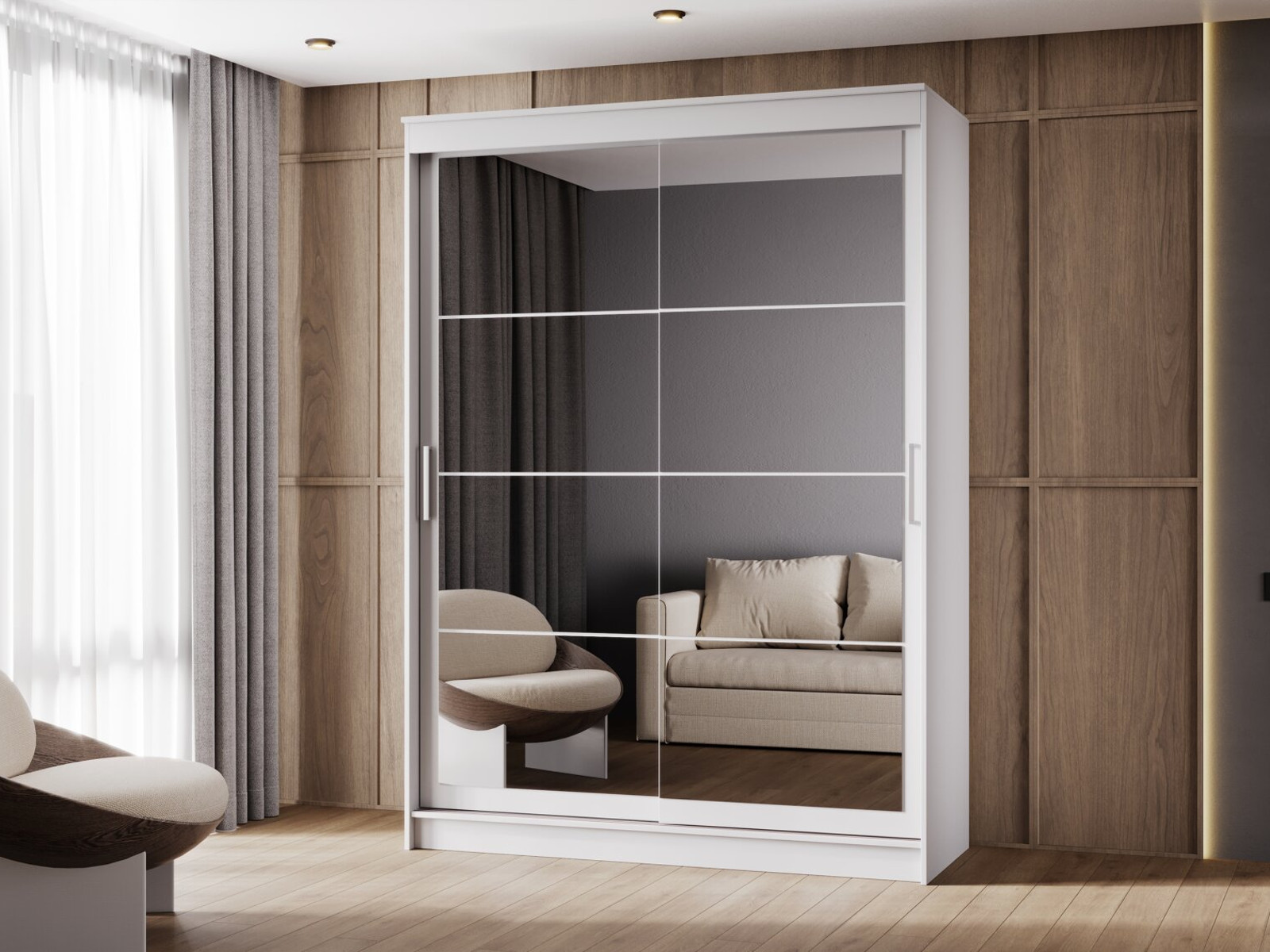 - Шкаф-купе Гранд-1 1600 Белый гладкий-двери Зеркало