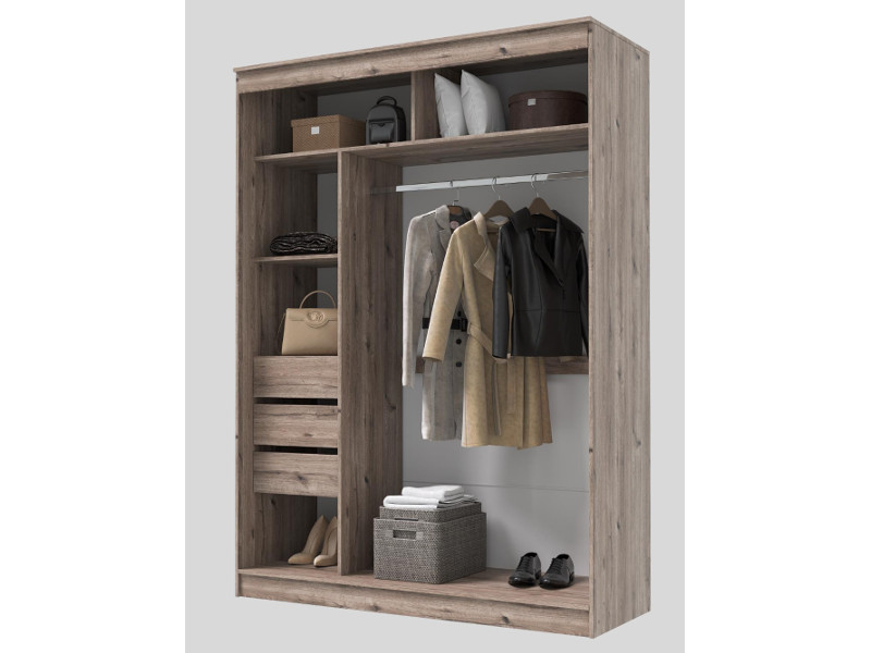 Шкаф-купе Гранд-1 1600 Дуб Горный-двери Зеркало-Лакобель белый