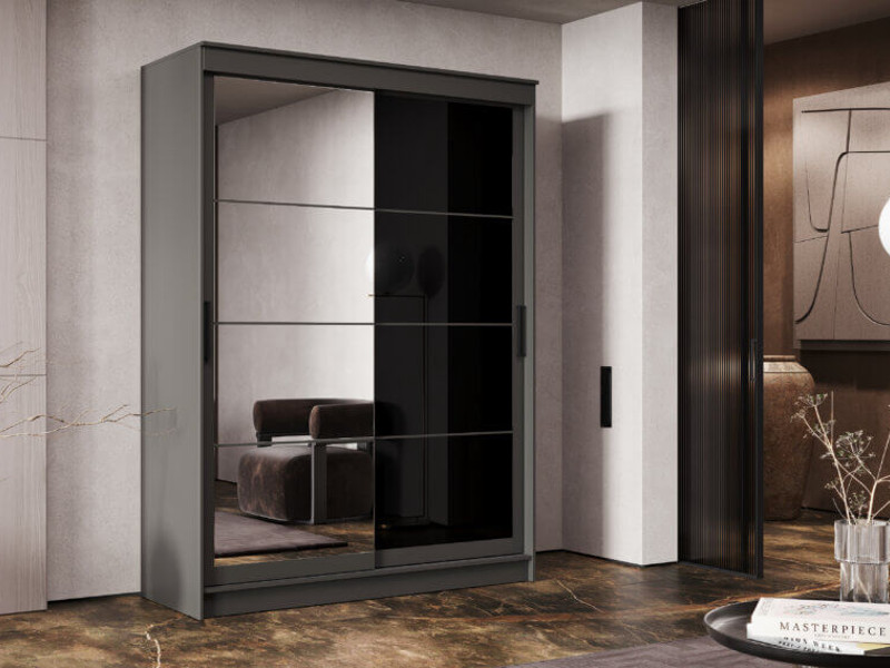 - Шкаф-купе Гранд-1 1600 Графит-двери Зеркало-Лакобель черный