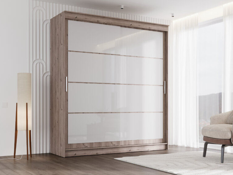 - Шкаф-купе Гранд-1 2000 Дуб Горный-двери Лакобель белый