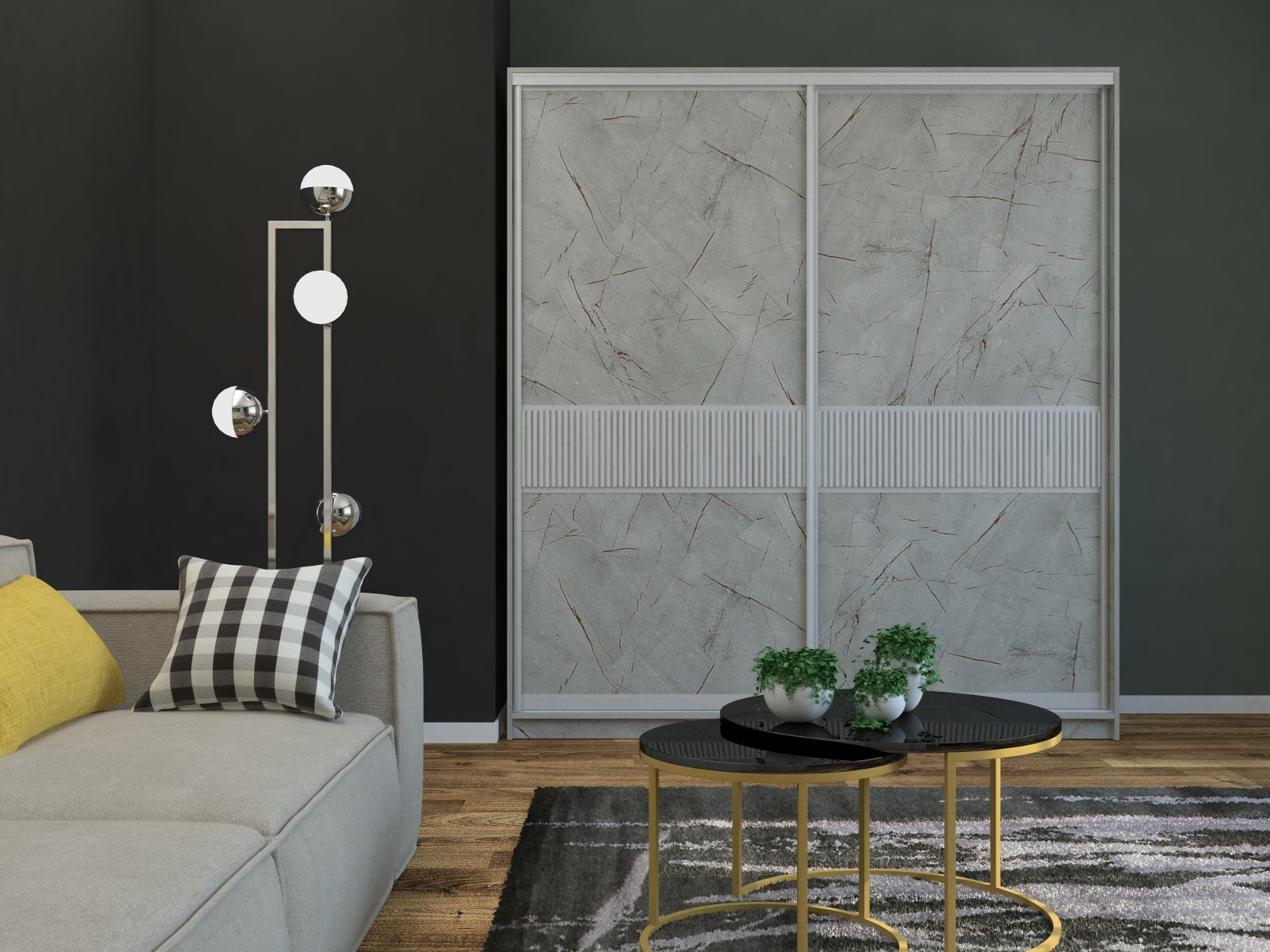 - Шкаф-купе Ксения 1400 узкая рельефная вставка МДФ Каспий светлый