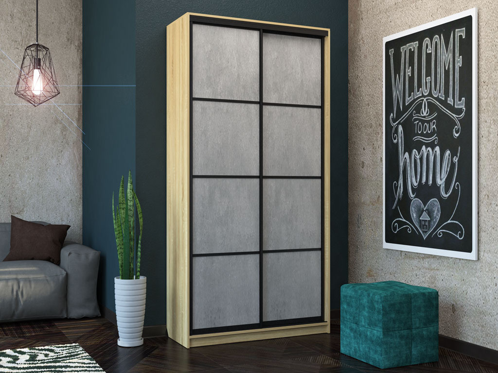 - Шкаф-купе Лофт Шк12-60 1200 глубина 600 фасад МДФ бетон 3г