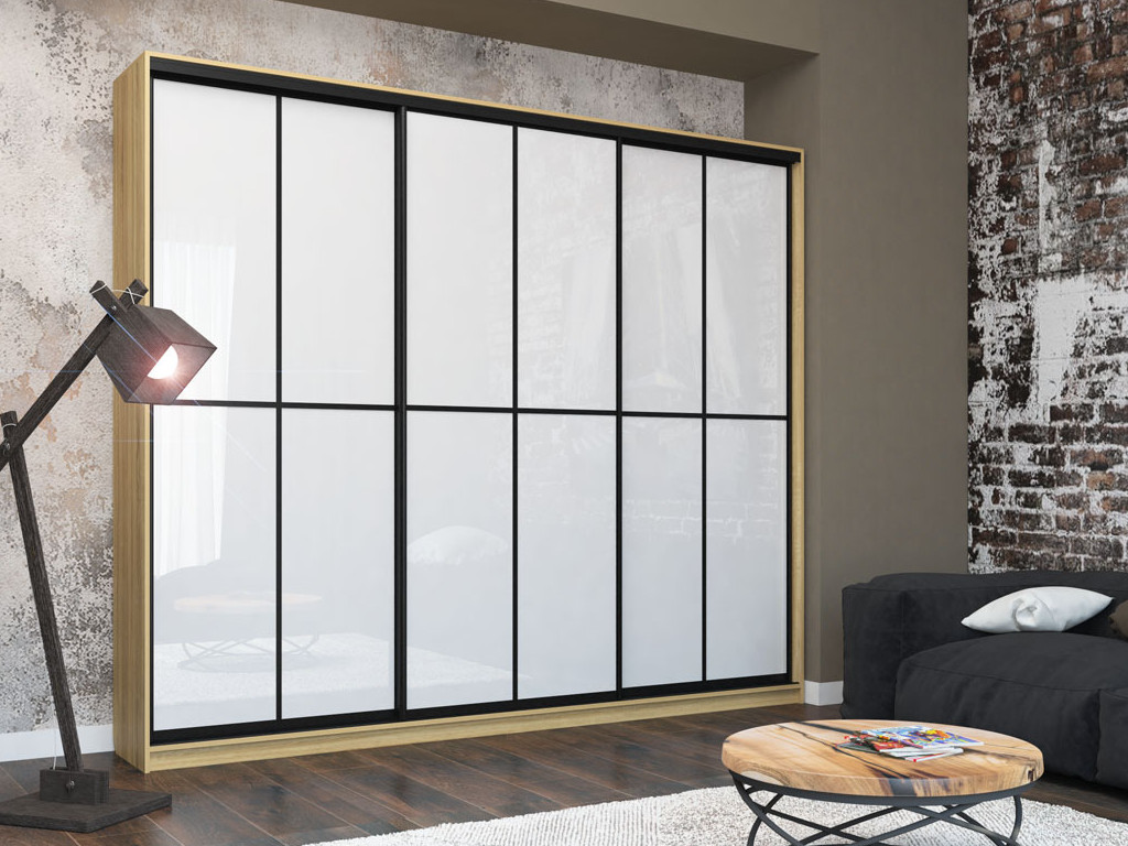 Шкаф-купе Лофт Шк30-47 3000 3 двери глубина 470 фасад МДФ белый глянец +