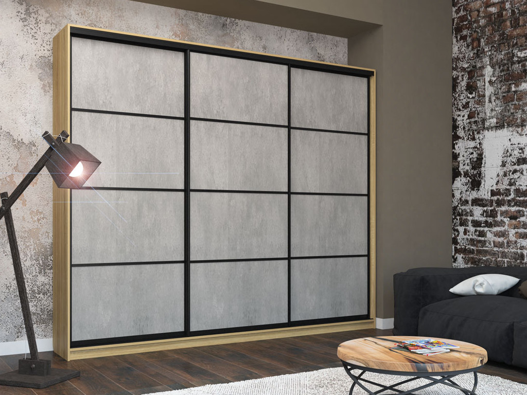 Шкаф-купе Лофт Шк30-47 3000 3 двери глубина 470 фасад МДФ бетон 3г
