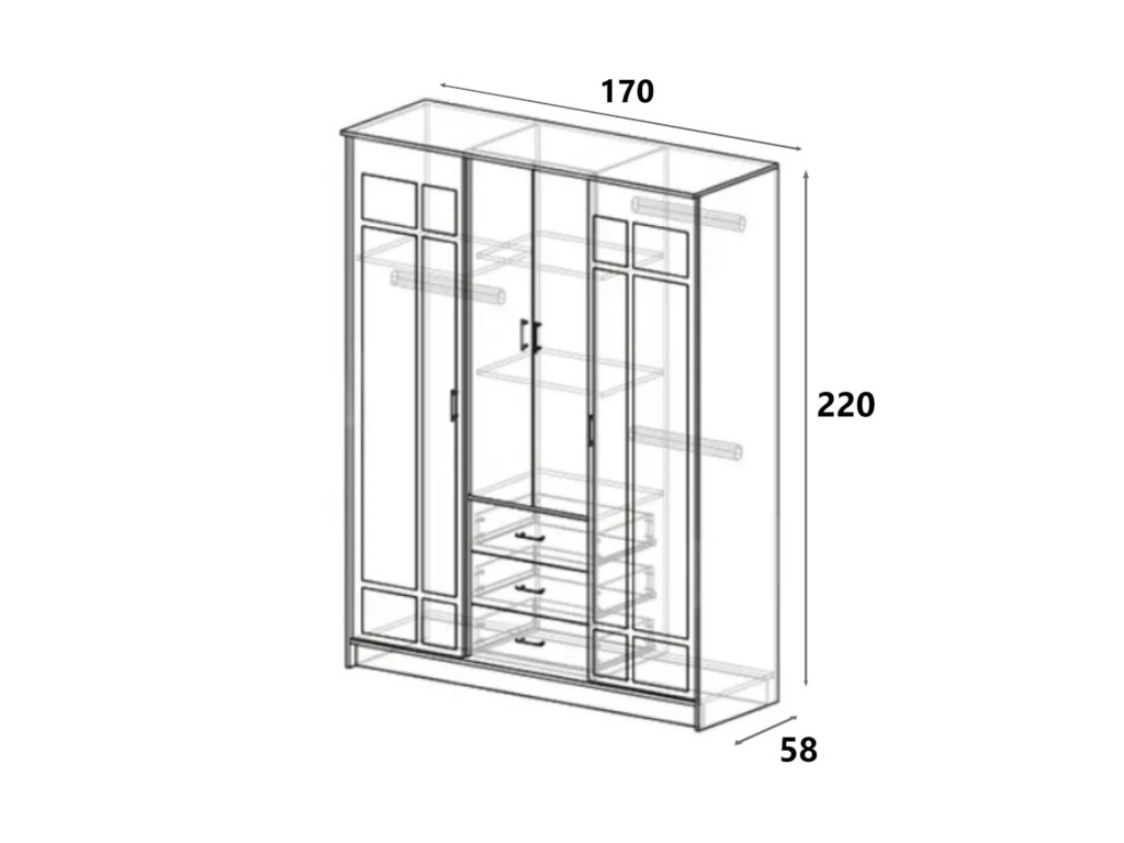 Размер: 1700(Ш) Х 2200(В) Х 580(Г) мм