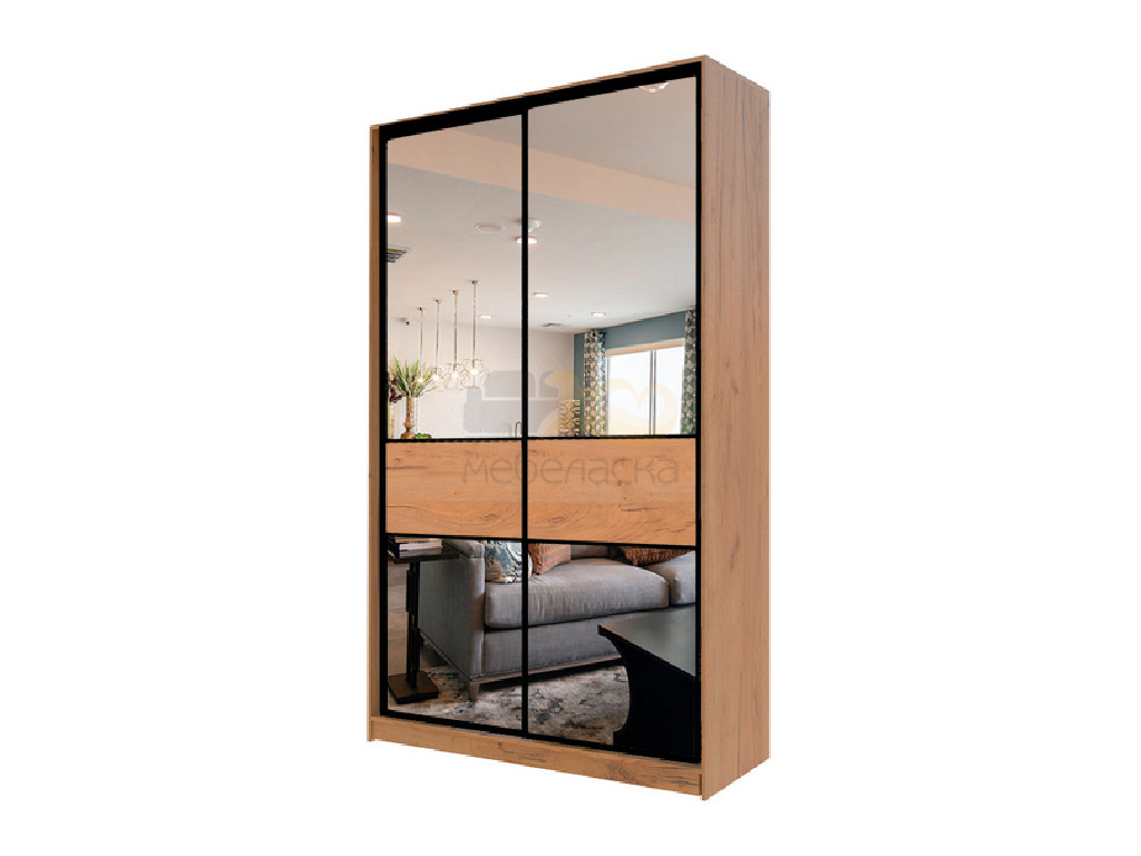 - 2 двери верхняя и нижняя вставка – Зеркало, центральная – ДСП 10 мм.