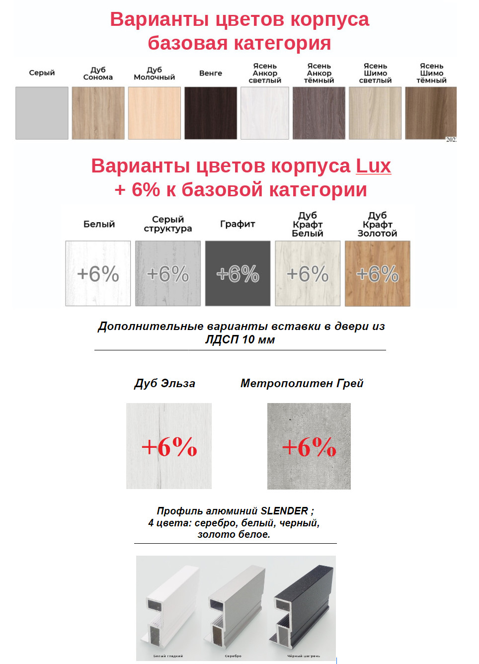 Профиль алюминий SLENDER: 4 цвета: серебро, белый, черный, золото белое.