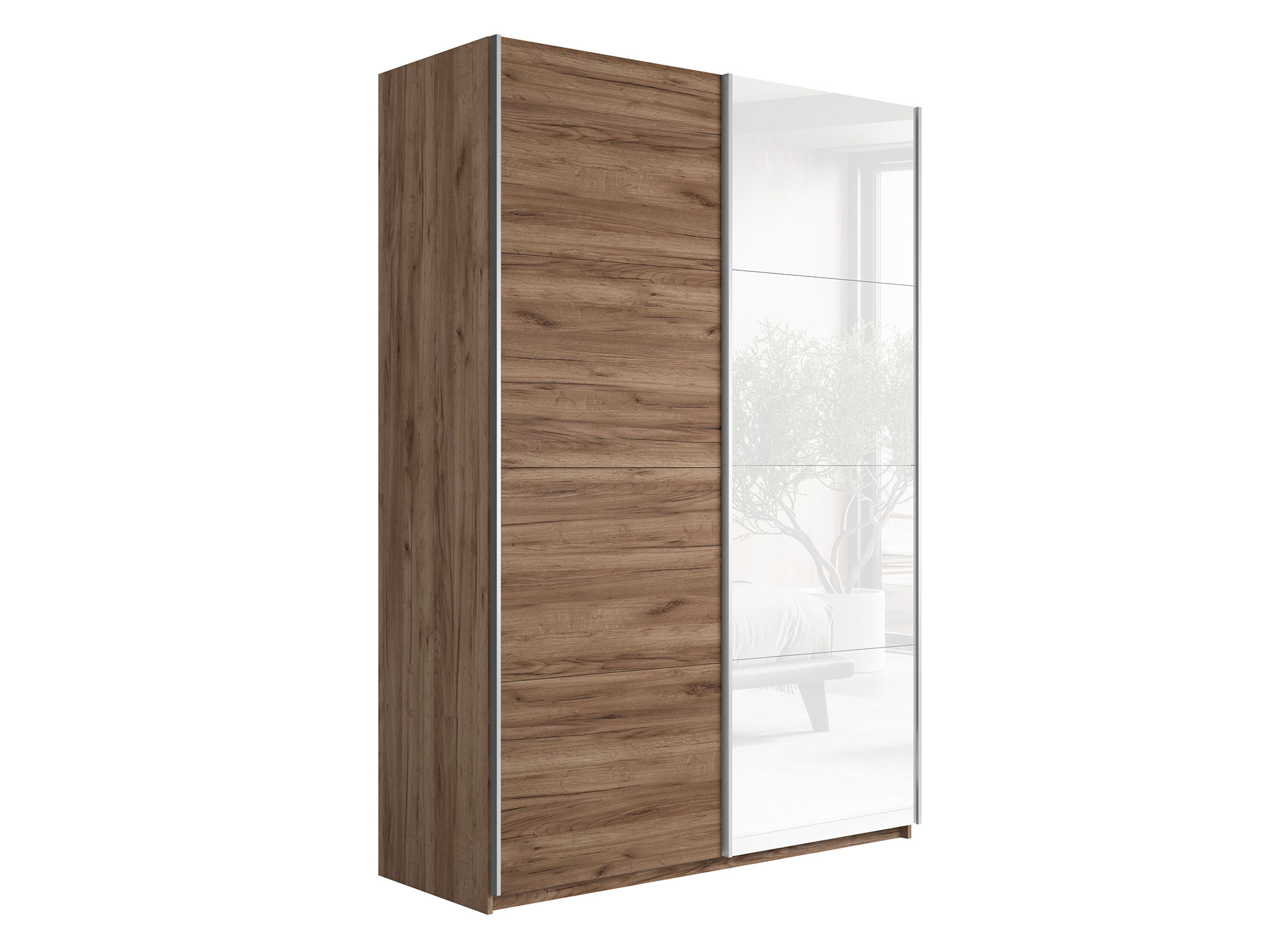 - Шкаф-купе Прайм 2-х дверный 1200 ДСП/Стекло Белое Крафт табачный
