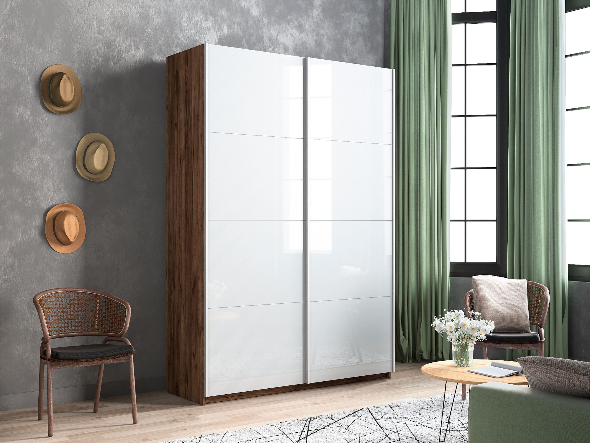 - Усиленная навесная система дверей помогает ходовому профилю выдерживать высокие нагрузки, а также сохраняет полезную площадь внутри шкафа, благодаря установке снаружи корпуса