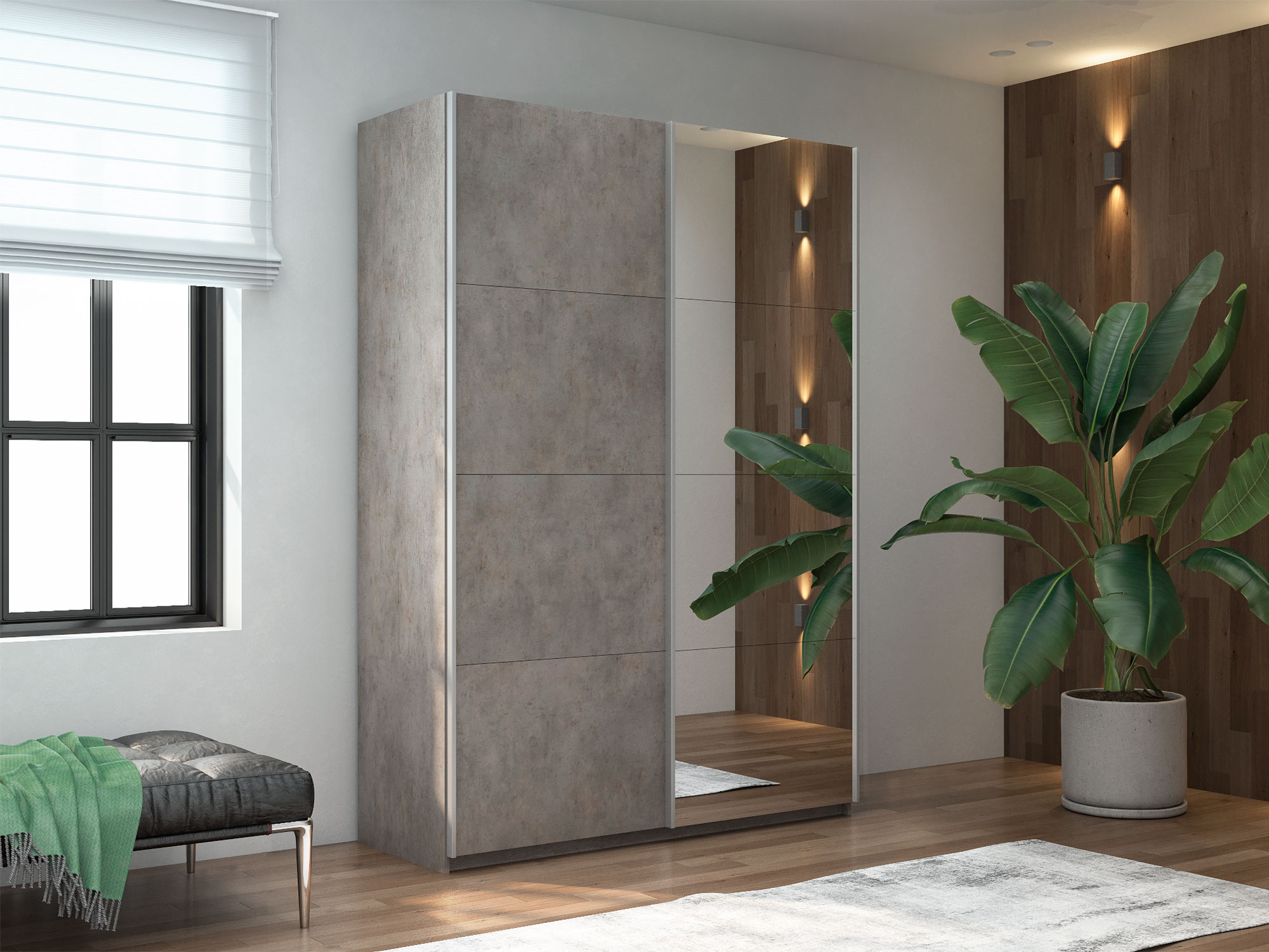 - Шкаф-купе Прайм 2-х дверный 1200 Зеркало/ДСП Бетон