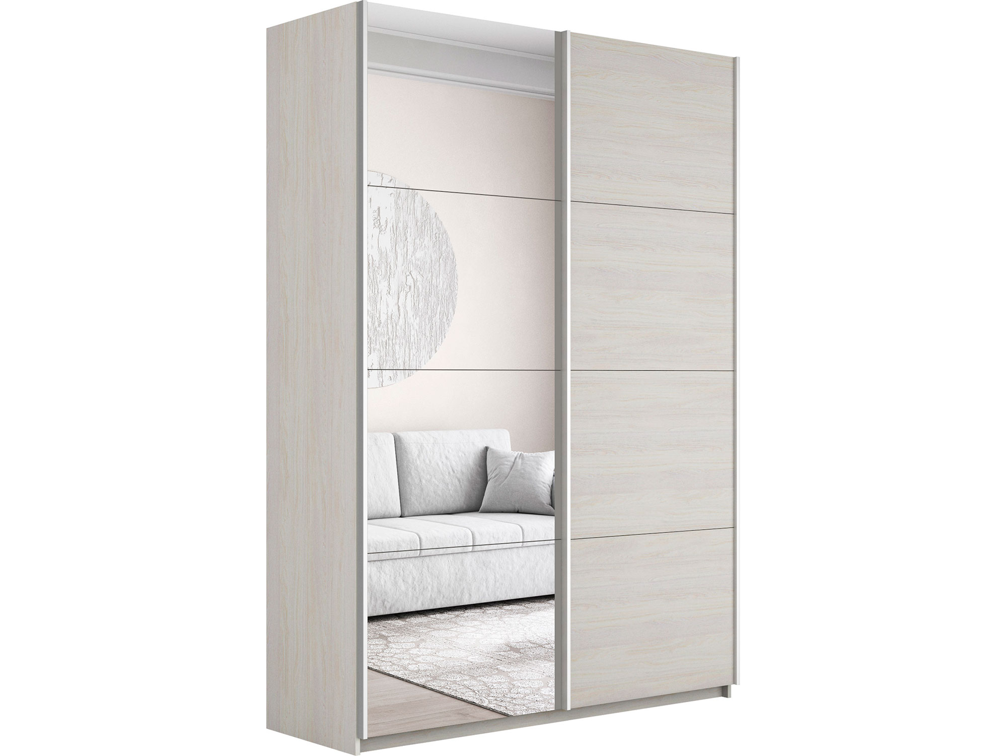 - Шкаф-купе Прайм 2-х дверный 1200 Зеркало/ДСП Ясень Анкор Светлый
