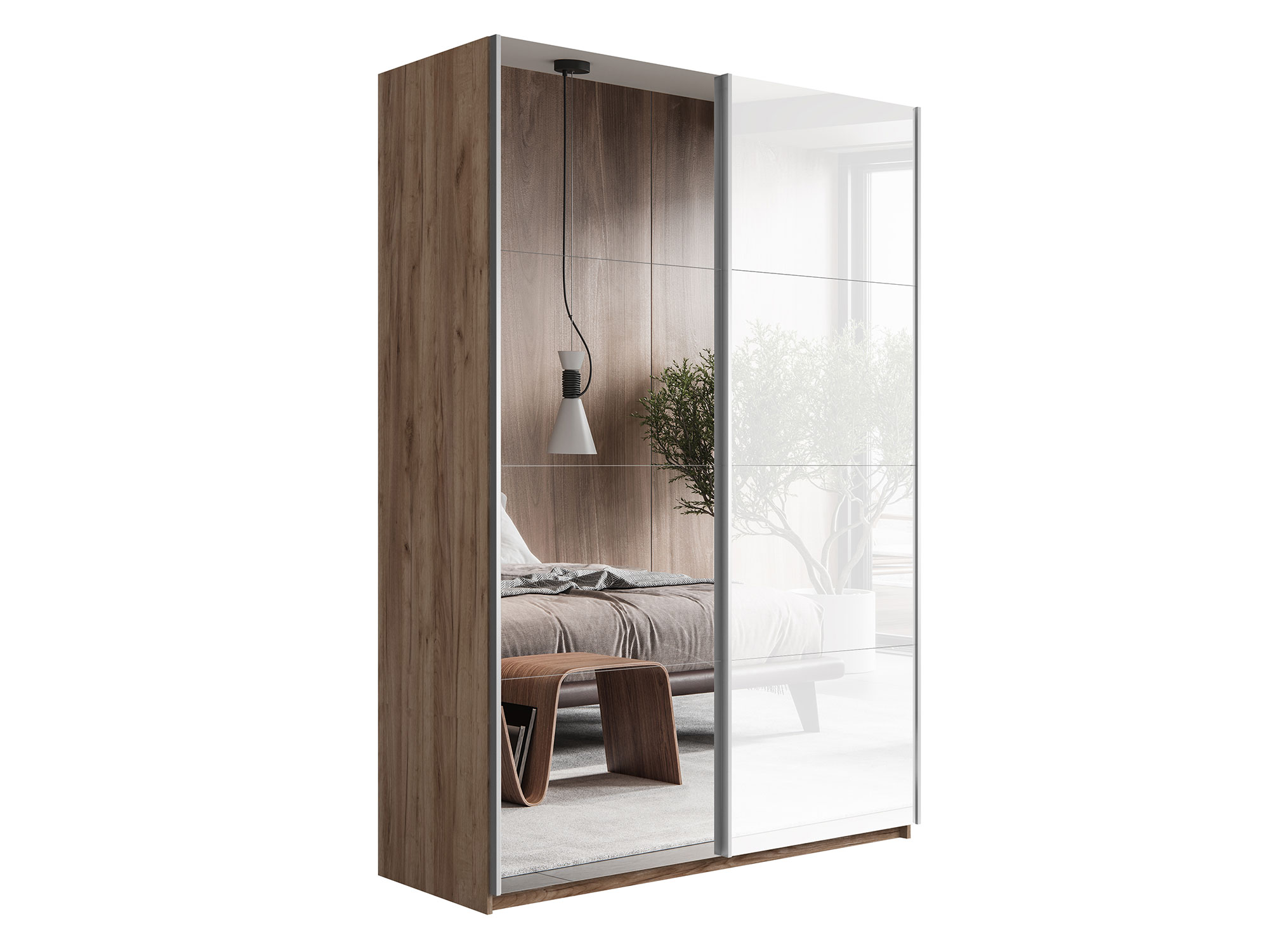 - Шкаф-купе Прайм 2-х дверный 1200 Зеркало/Стекло Белое Крафт табачный