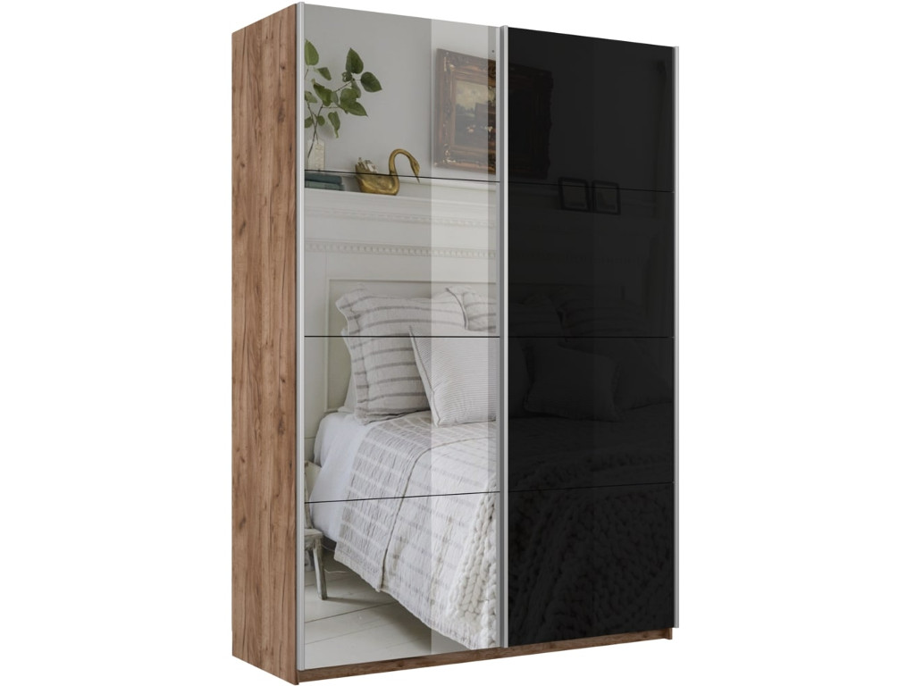 Шкаф-купе Прайм 2-х дверный 1200 Зеркало/Стекло Черное Крафт табачный