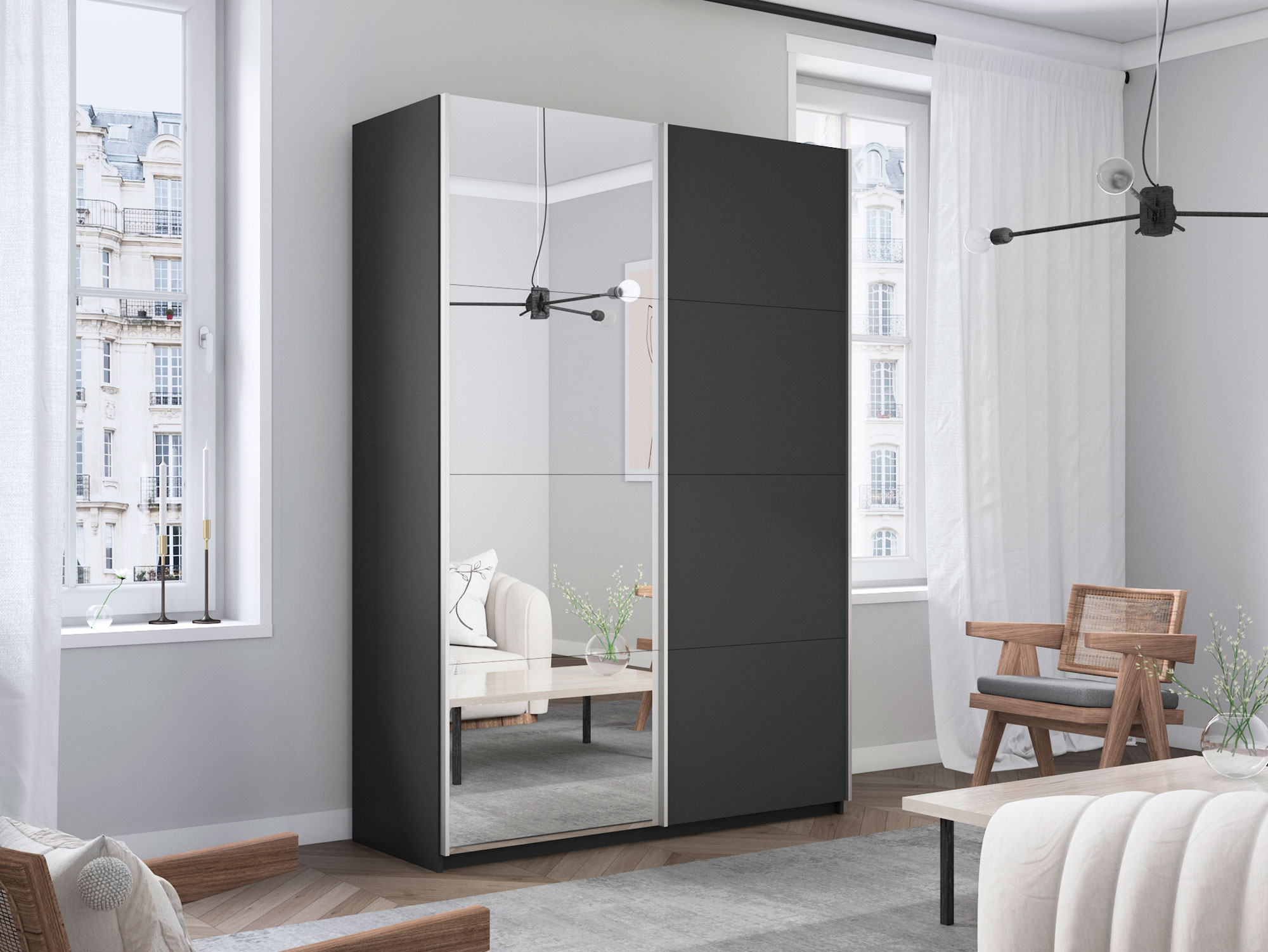 - Шкаф-купе Прайм 2-х дверный 1400 Зеркало/ДСП Серый Диамант