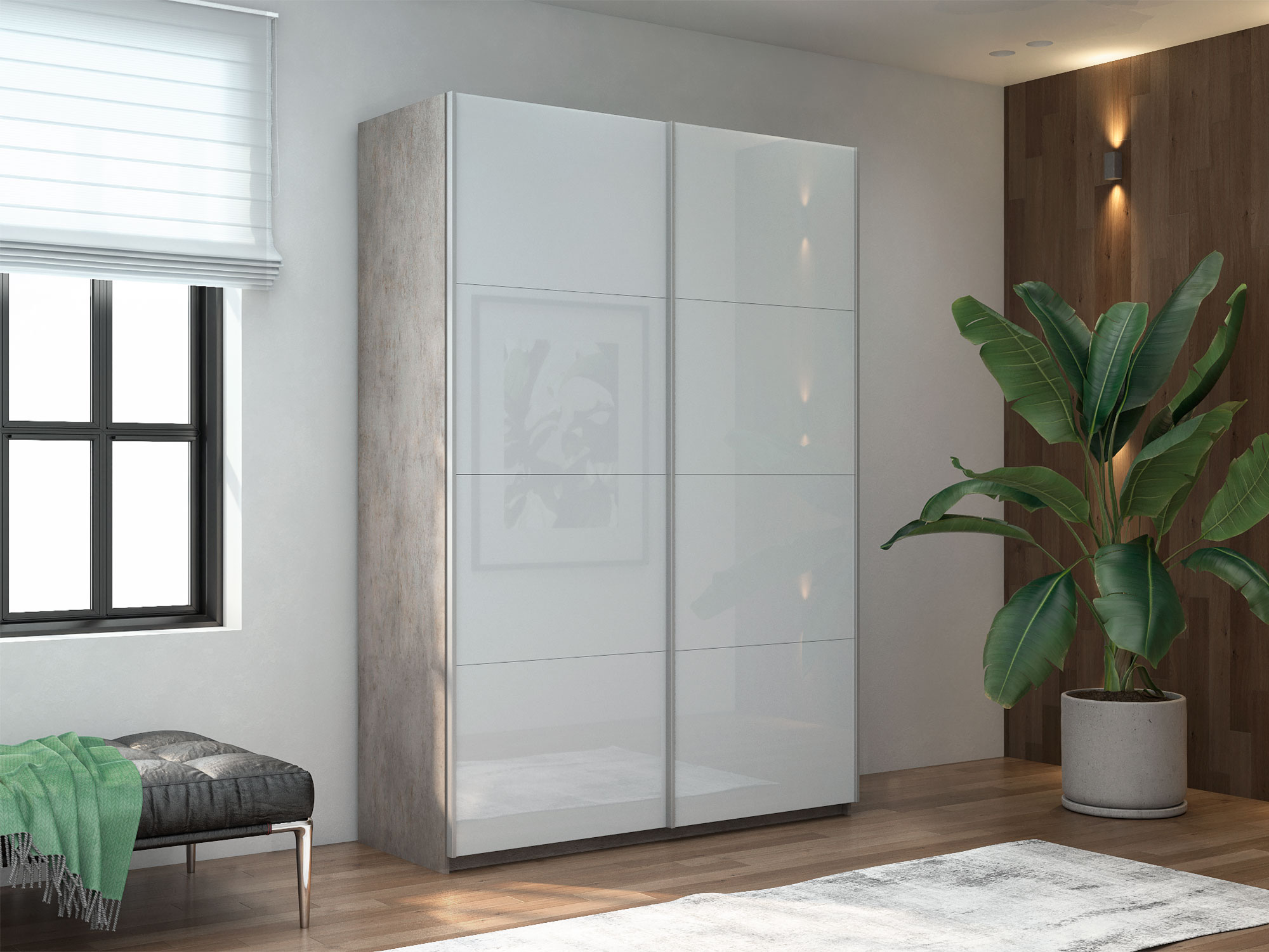 - Шкаф-купе Прайм 2-х дверный 1600 Стекло Белое Бетон