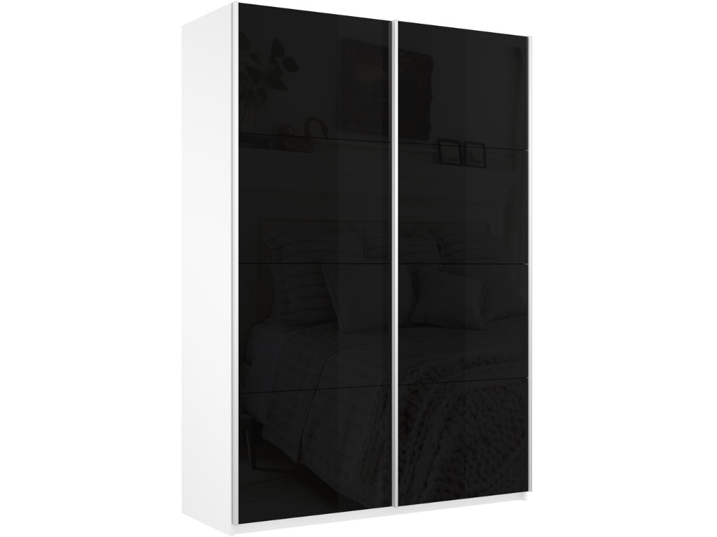 Шкаф-купе Прайм 2-х дверный 1600 Стекло Черное Белый Снег