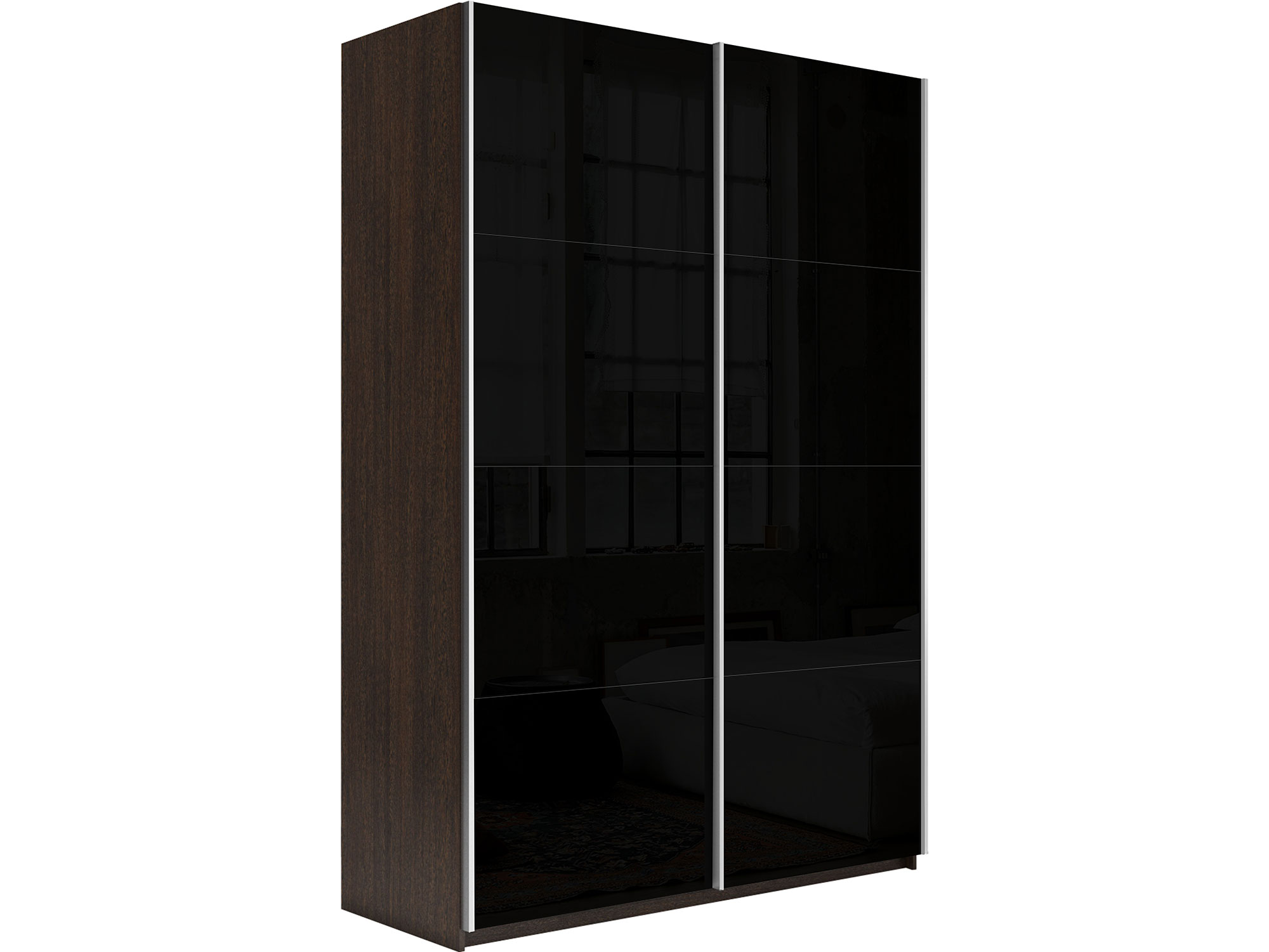 - Шкаф-купе Прайм 2-х дверный 1600 Стекло Черное Венге