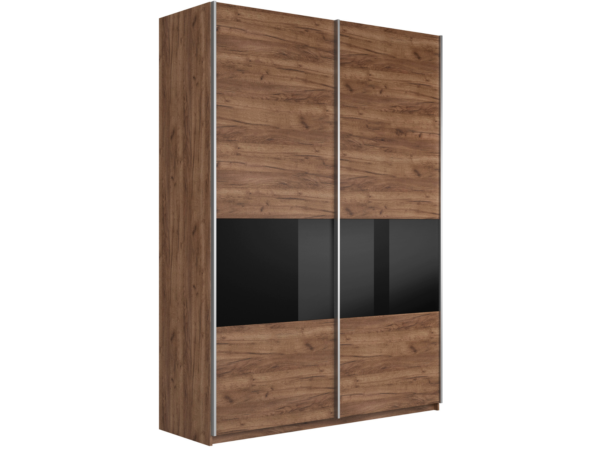 - Шкаф-купе Прайм 2-х дверный ДСП/вставки Стекло Черное Крафт табачный