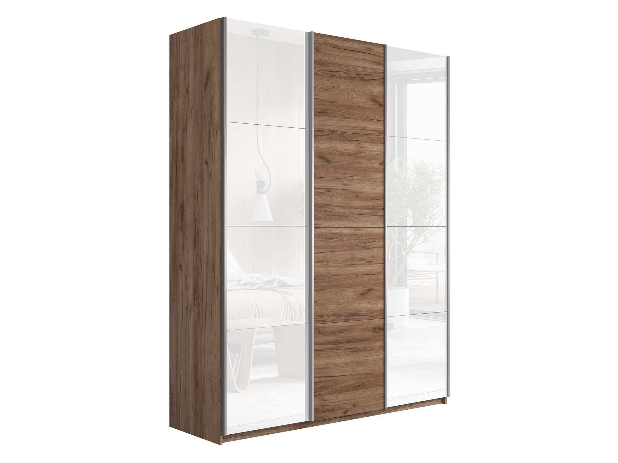 - Шкаф-купе Прайм 3-х дверный 1800 два Стекла Белые/ДСП Крафт табачный