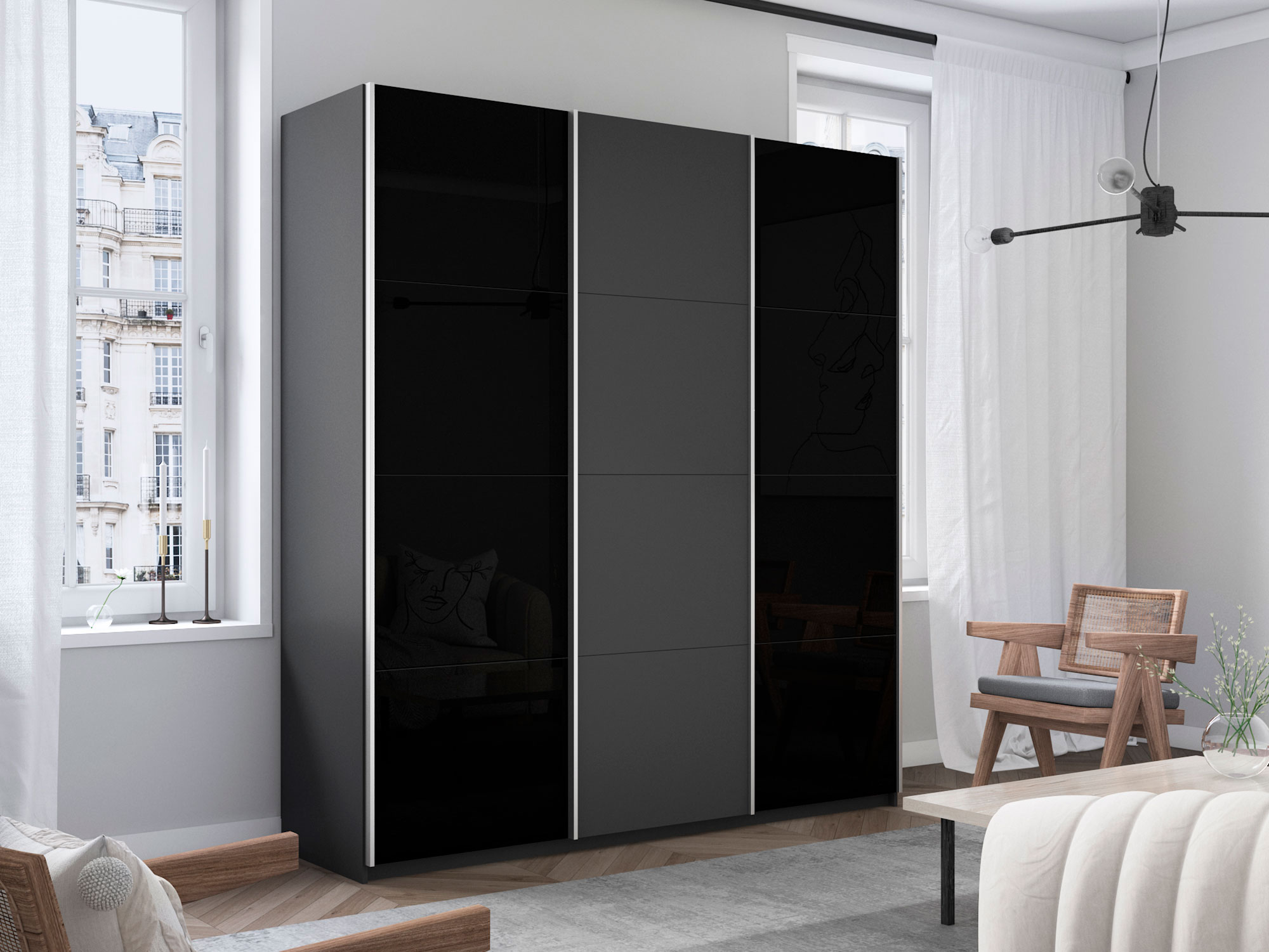 Шкаф-купе Прайм 3-х дверный 1800 два Стекла Черные/ДСП Серый Диамант