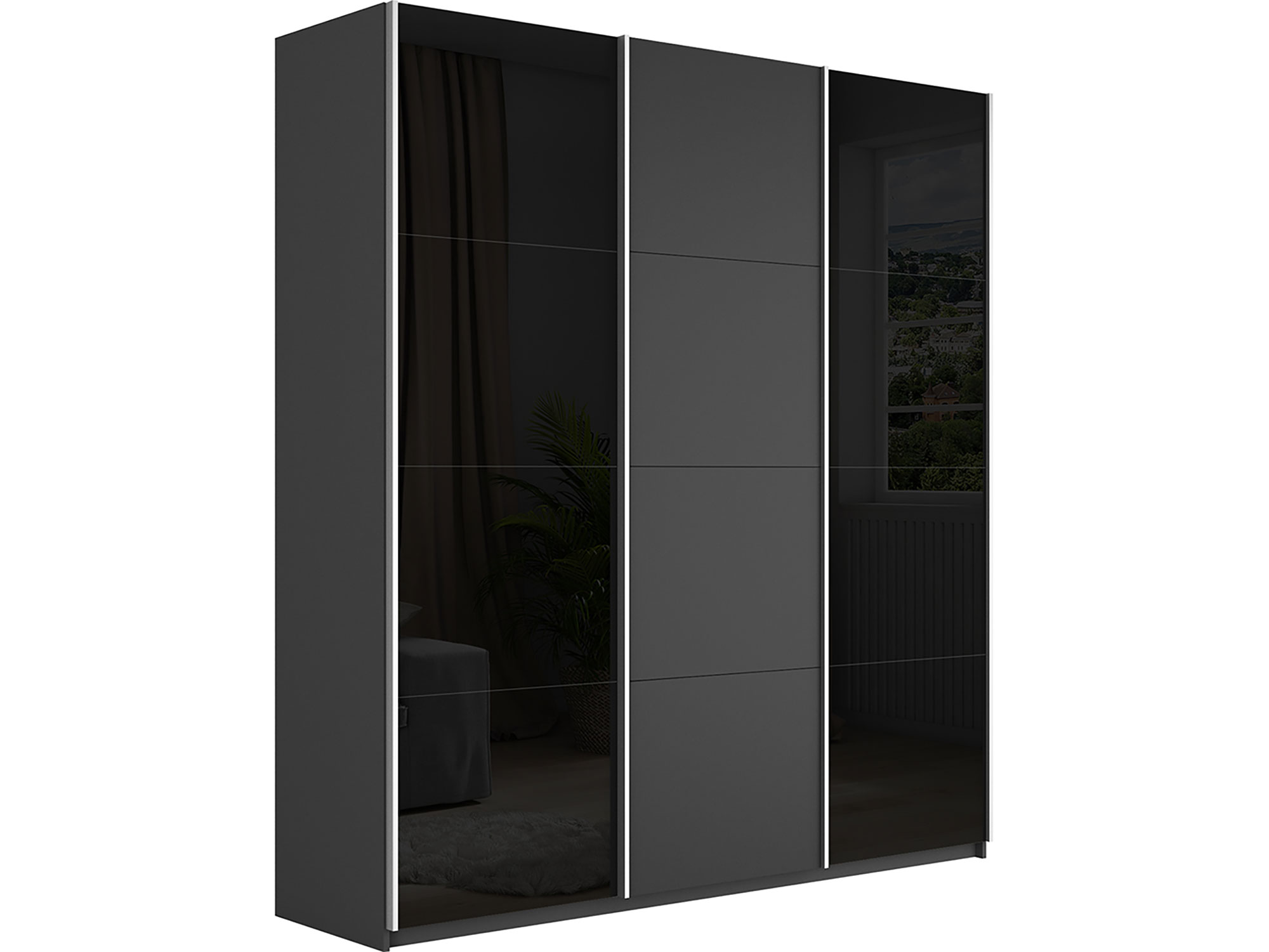 - Шкаф-купе Прайм 3-х дверный 1800 два Стекла Черные/ДСП Серый Диамант