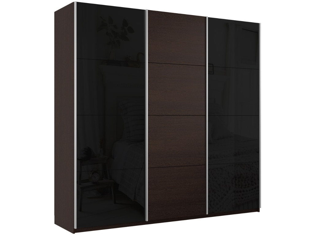 - Шкаф-купе Прайм 3-х дверный 1800 два Стекла Черные/ДСП Венге