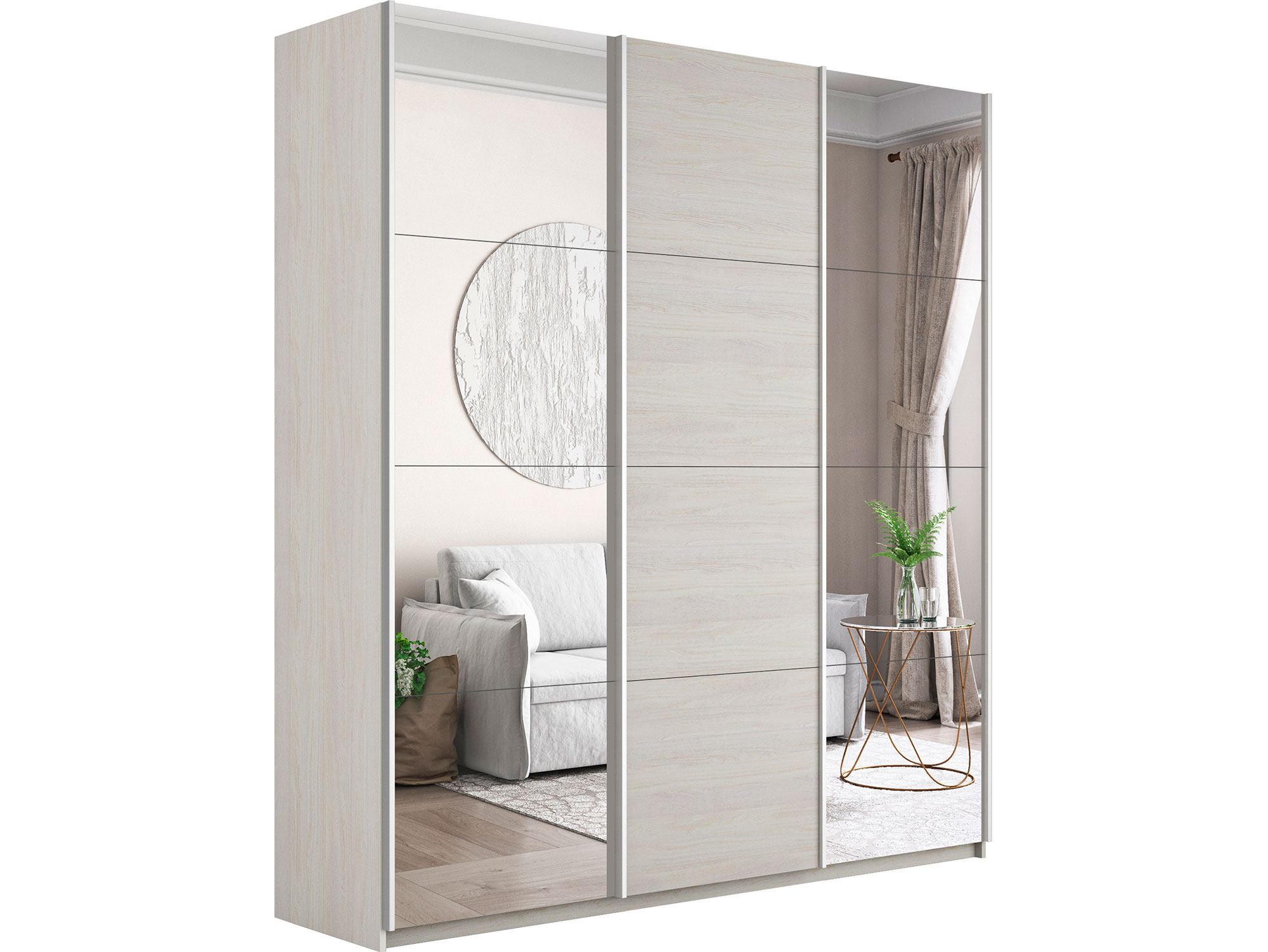 Шкаф-купе Прайм 3-х дверный 1800 два Зеркала/ДСП Ясень Анкор Светлый