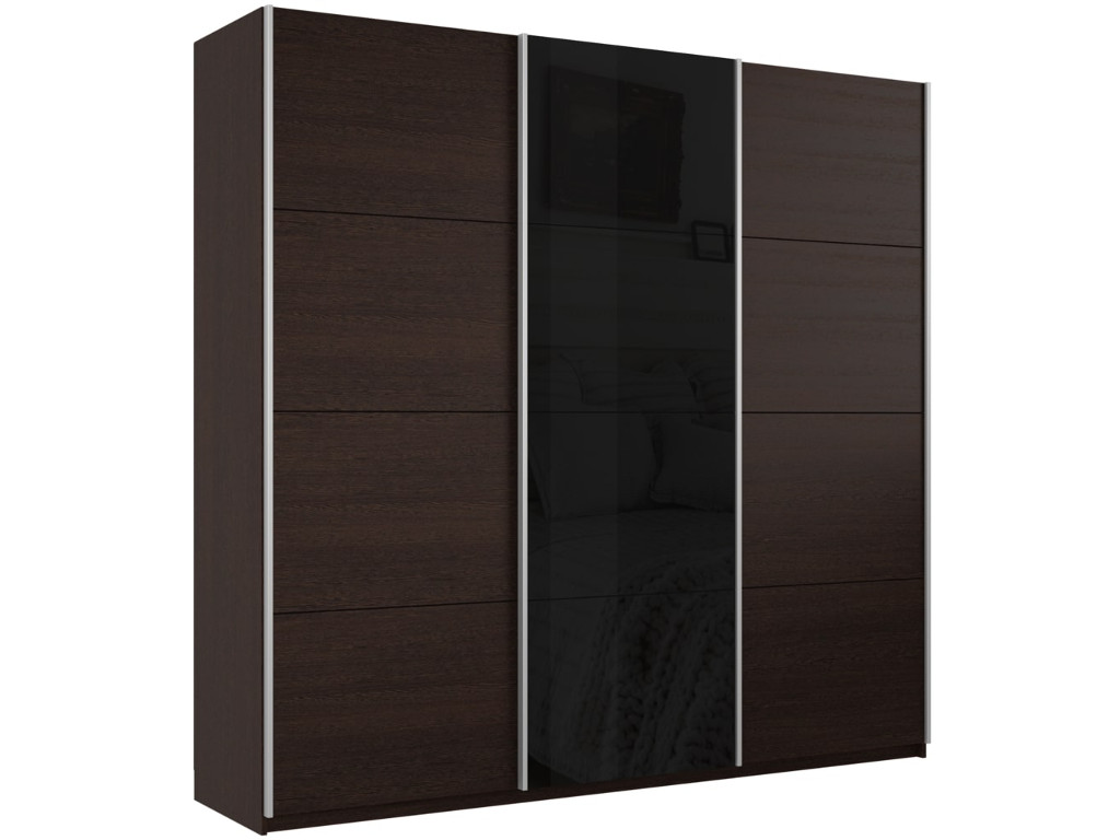 - Шкаф-купе Прайм 3-х дверный 2100 ДСП/Стекло Черное/ДСП Венге
