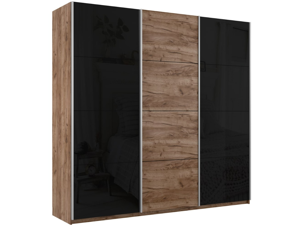 - Шкаф-купе Прайм 3-х дверный 2100 два Стекла Черные/ДСП Крафт табачный