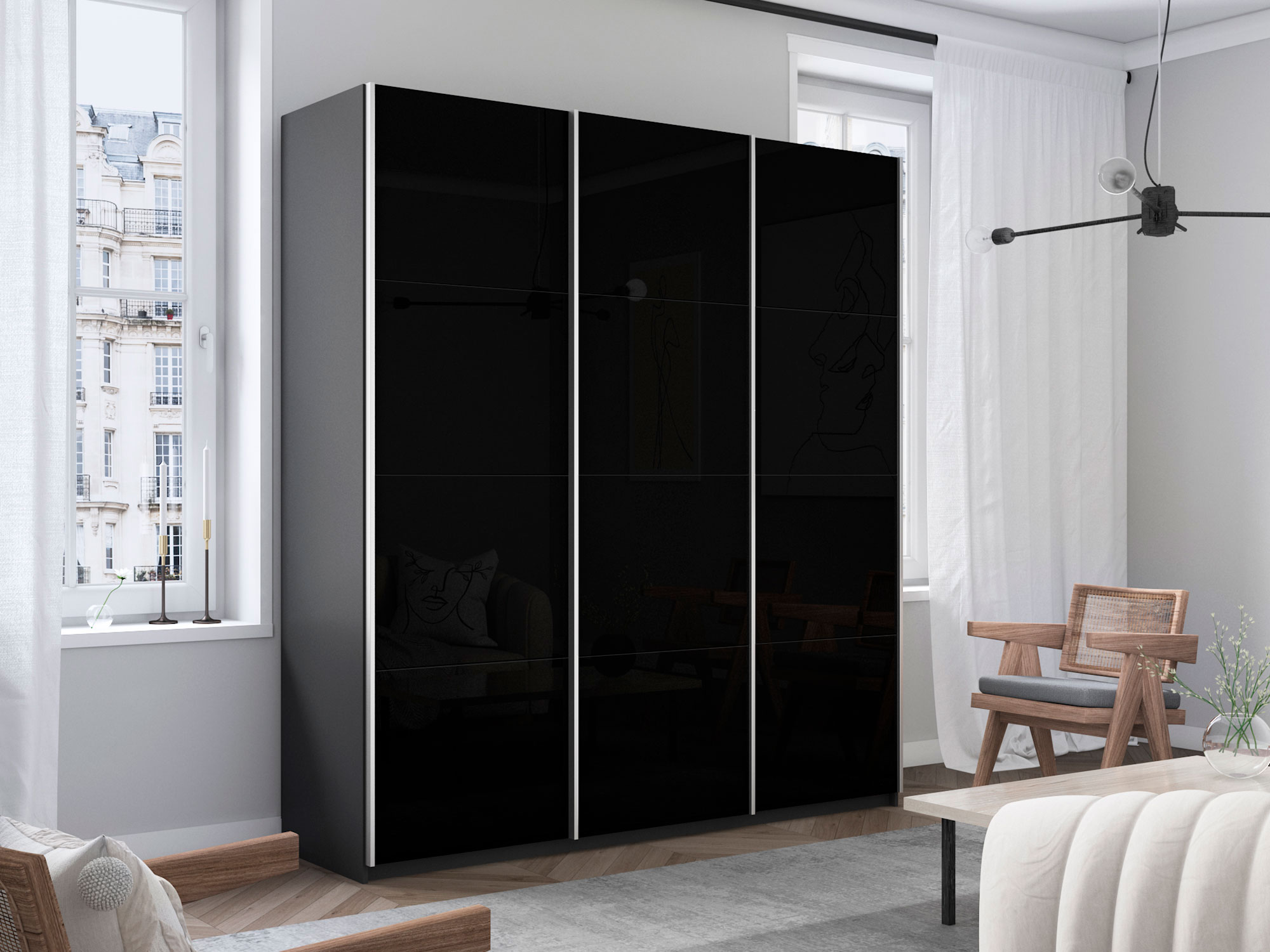 - Шкаф-купе Прайм 3-х дверный 2100 три стекла черные Серый Диамант