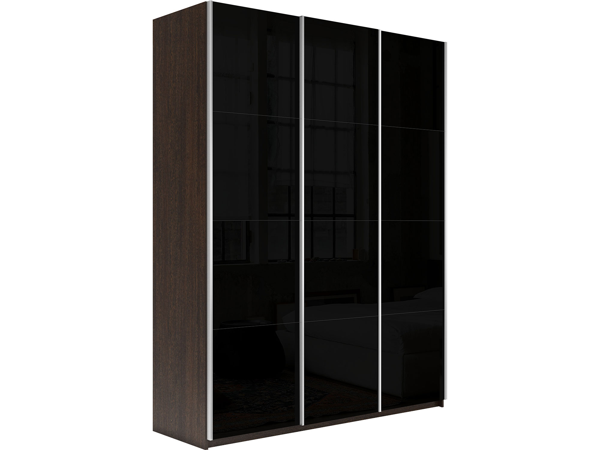 - Шкаф-купе Прайм 3-х дверный 2100 три стекла черные Венге