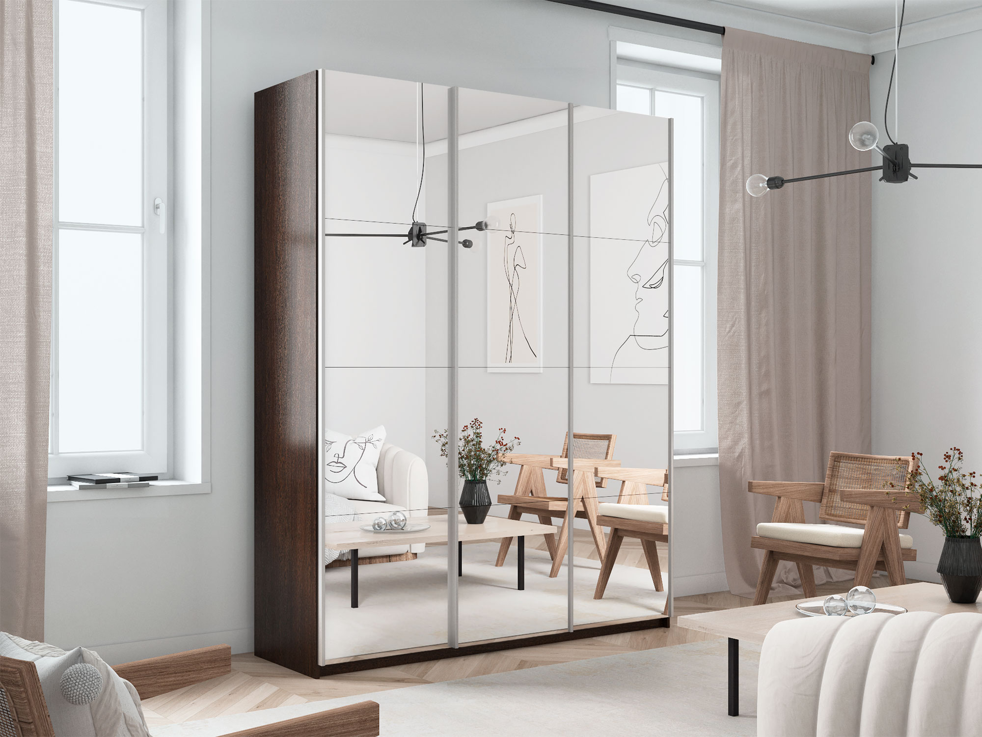 - Шкаф-купе Прайм 3-х дверный 2100 три зеркала Венге