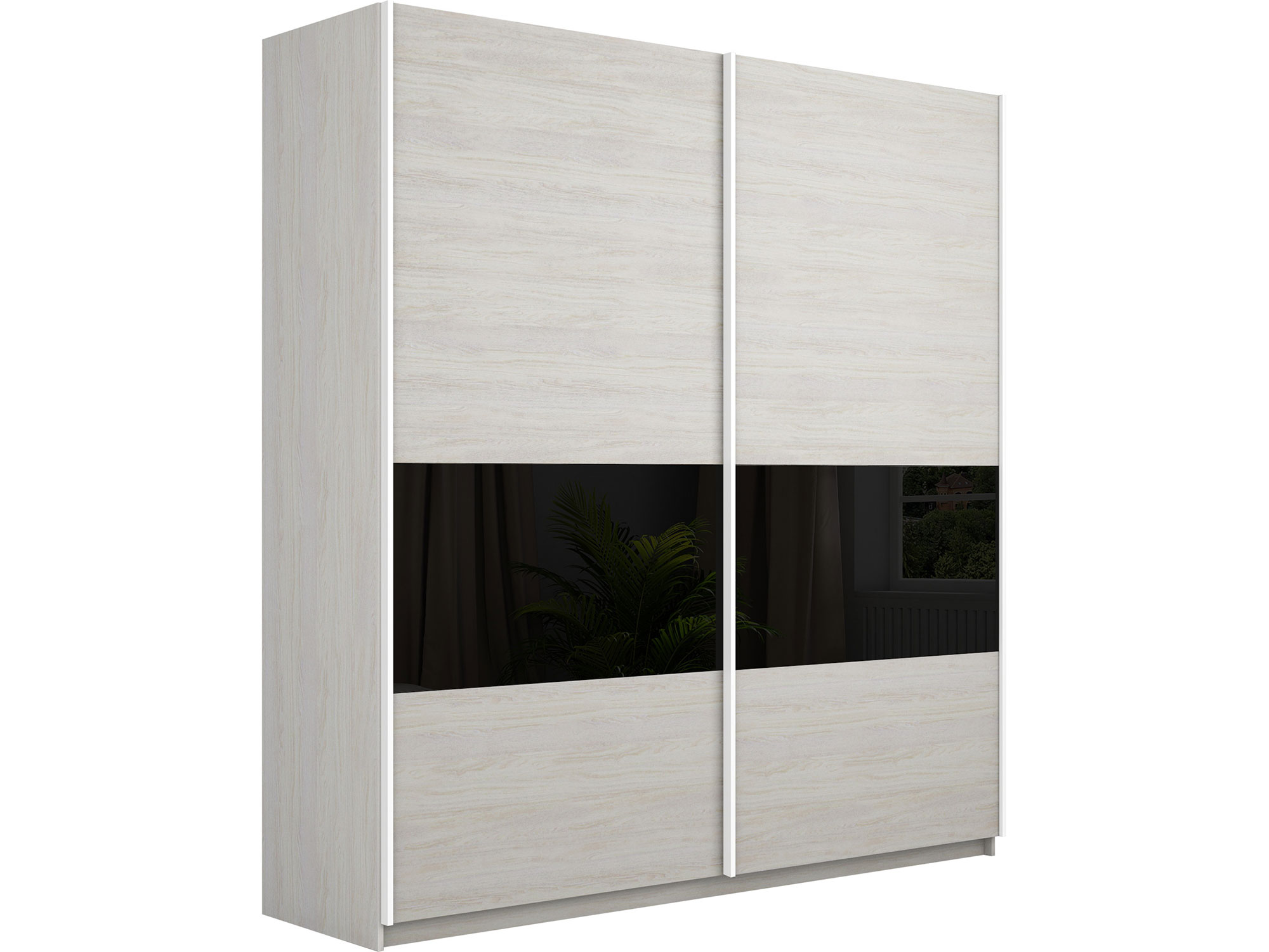 - Шкаф-купе Прайм Широкий 2-х дверный ДСП/вставки Стекло Черное Белый Снег