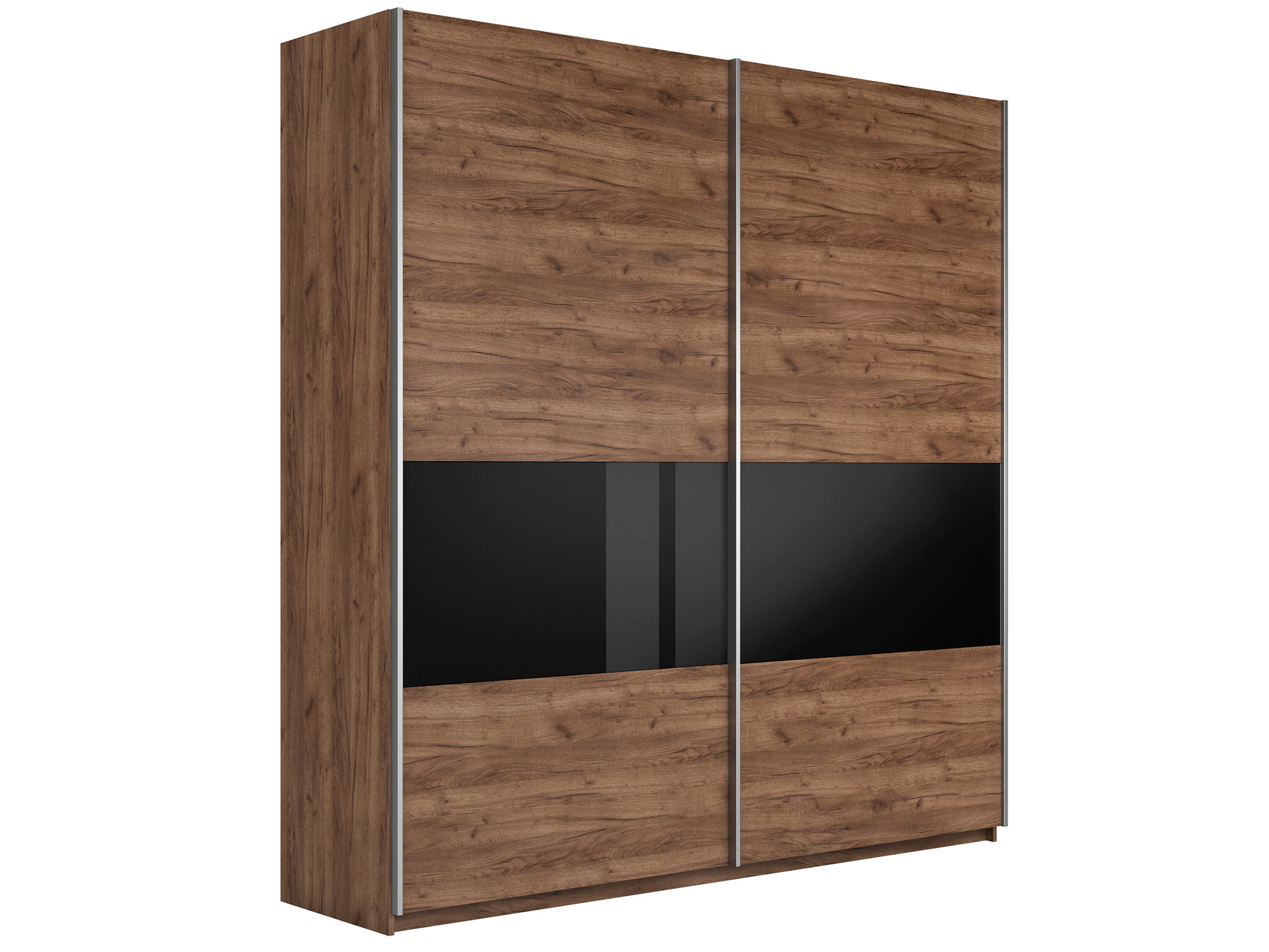 Шкаф-купе Прайм Широкий 2-х дверный ДСП/вставки Стекло Черное Крафт табачный
