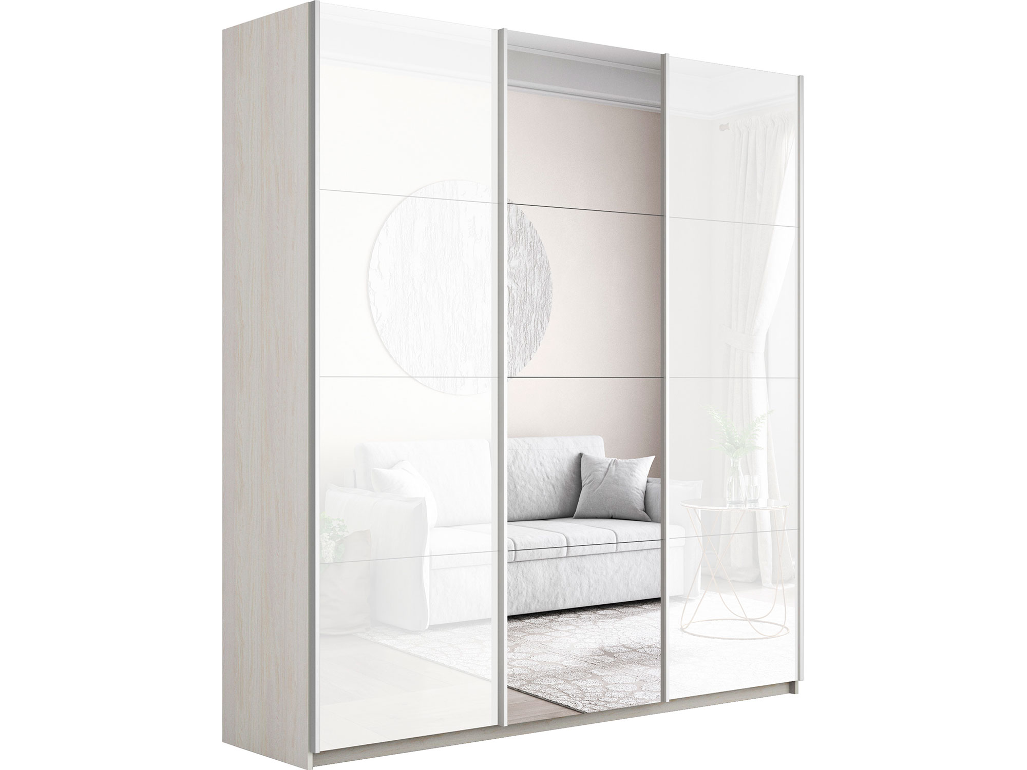 - Шкаф-купе Прайм Широкий 3-х дверный два белых стекла/зеркало Ясень Анкор Светлый