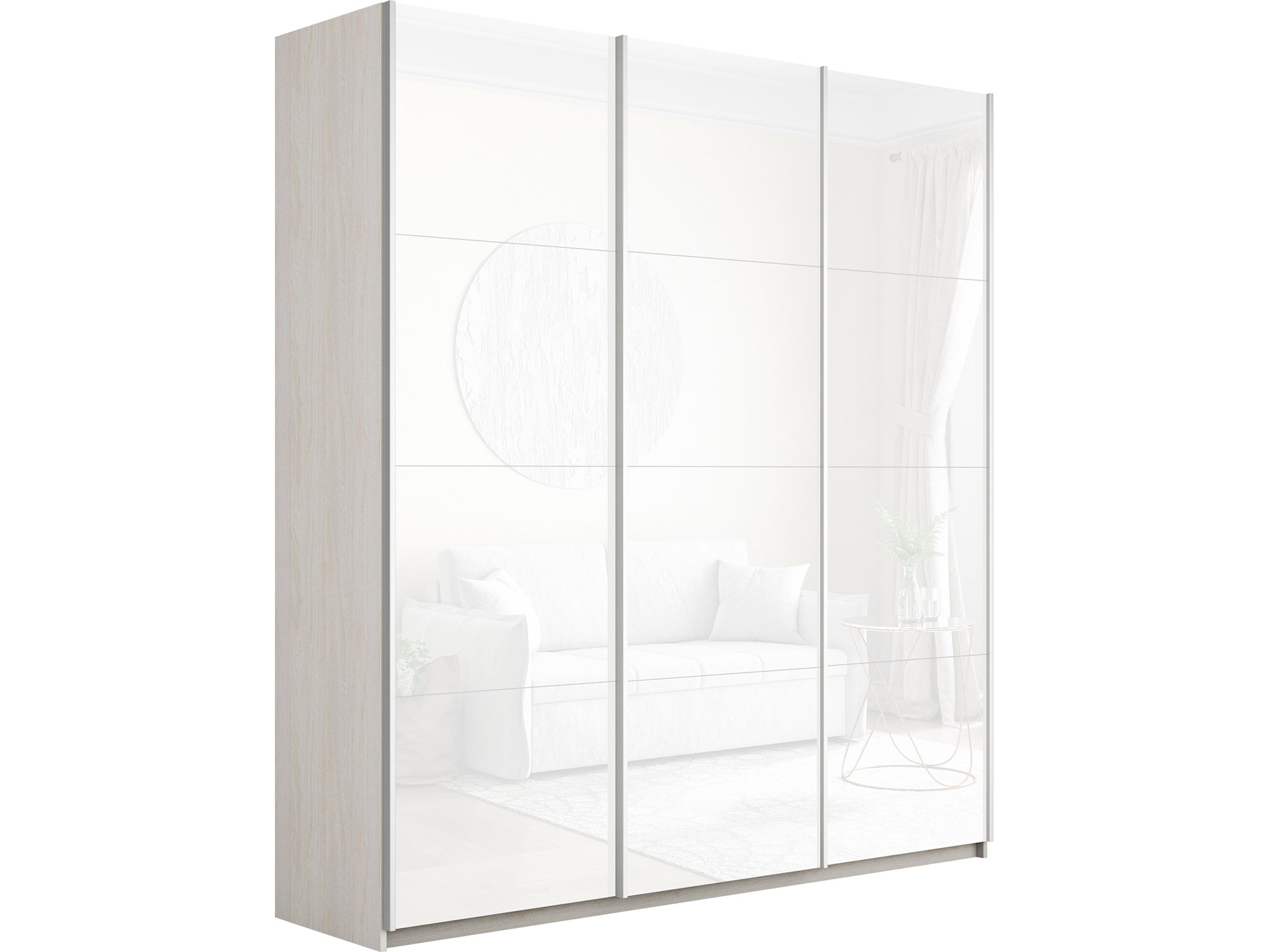 Шкаф-купе Прайм Широкий 3-х дверный три белых стекла Ясень Анкор Светлый
