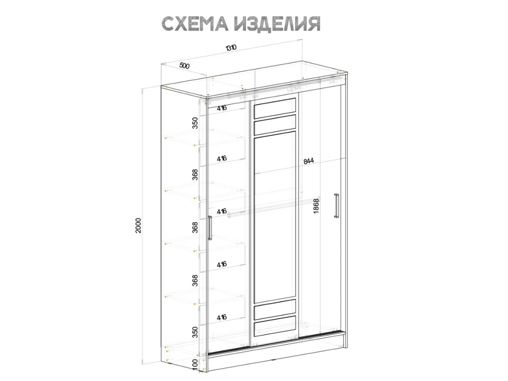 - Шкаф-купе Тео ШКК-02 белый