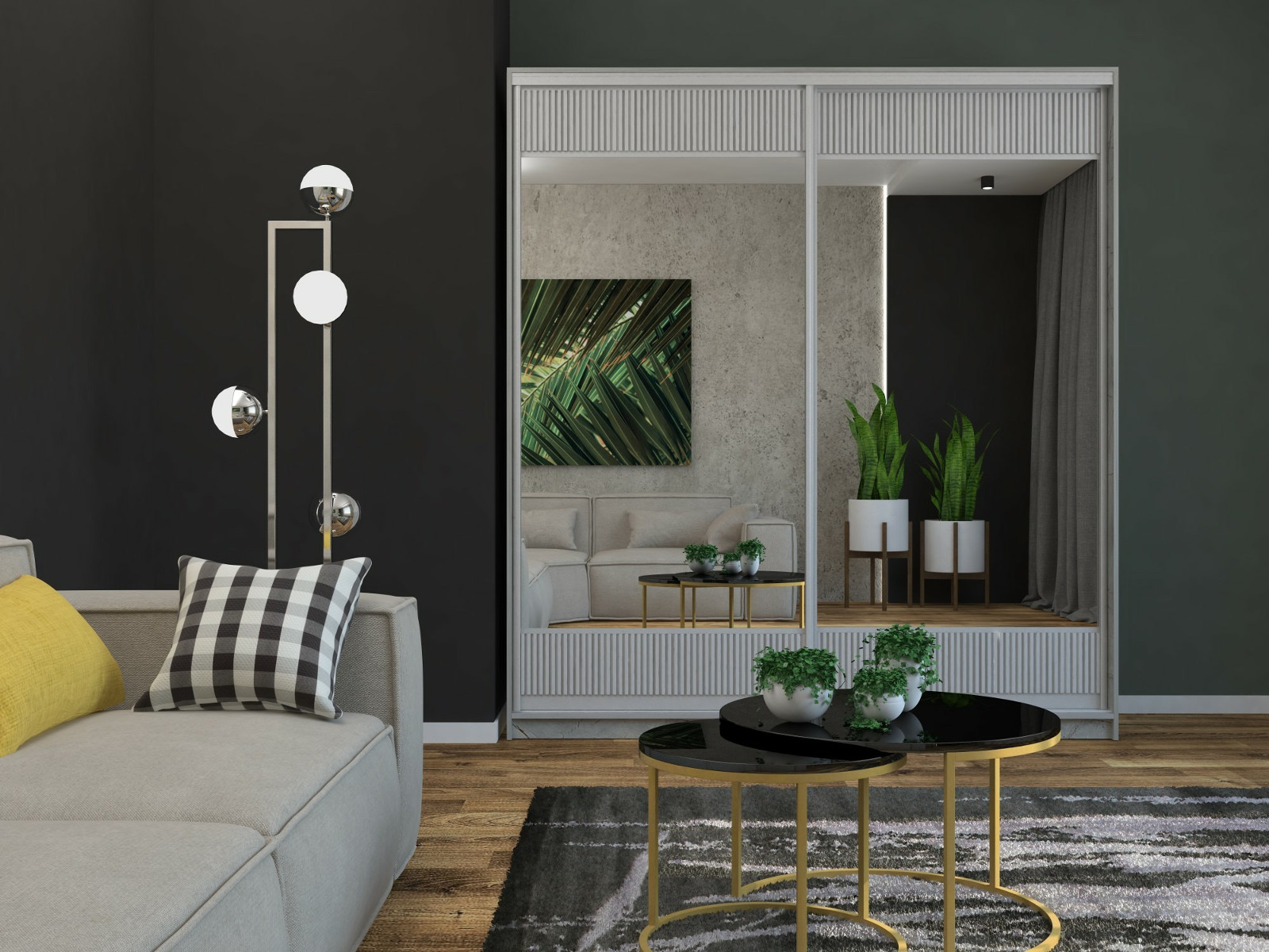 - Шкаф-купе Юлия 2400 комбинированный рельефный МДФ/зеркало