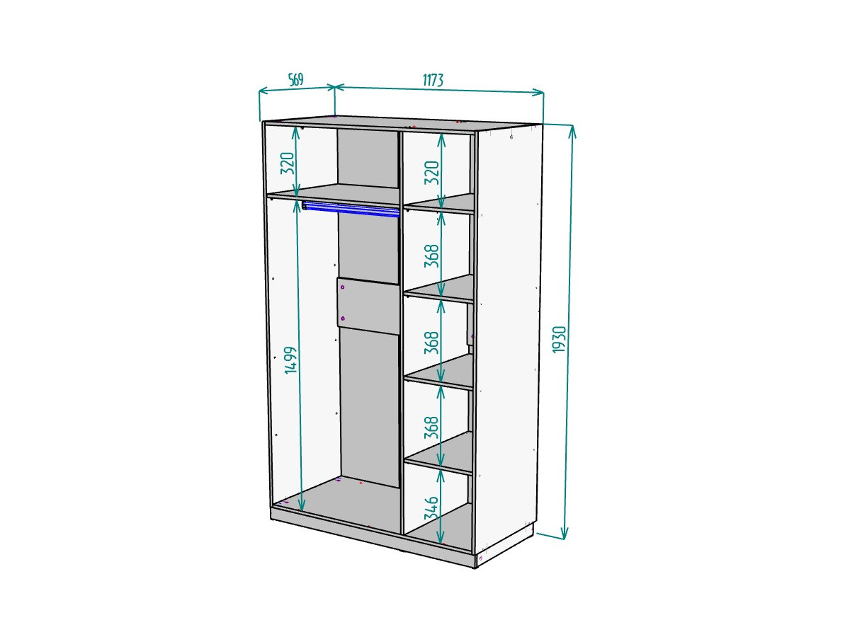 - Ширина 1173 мм