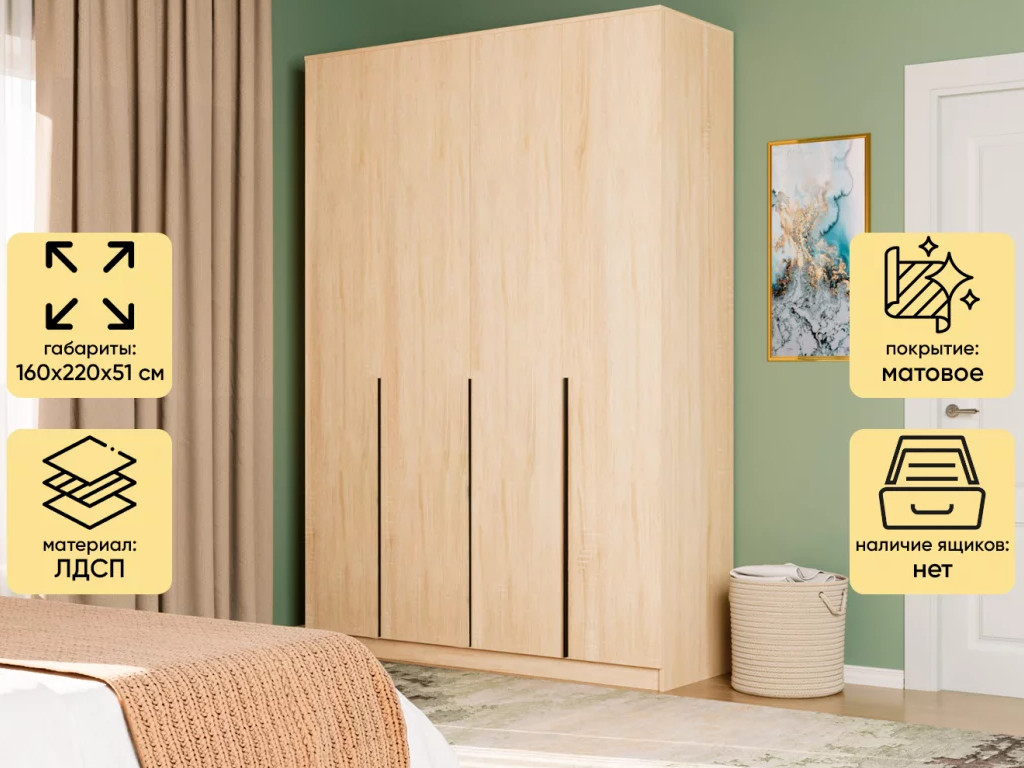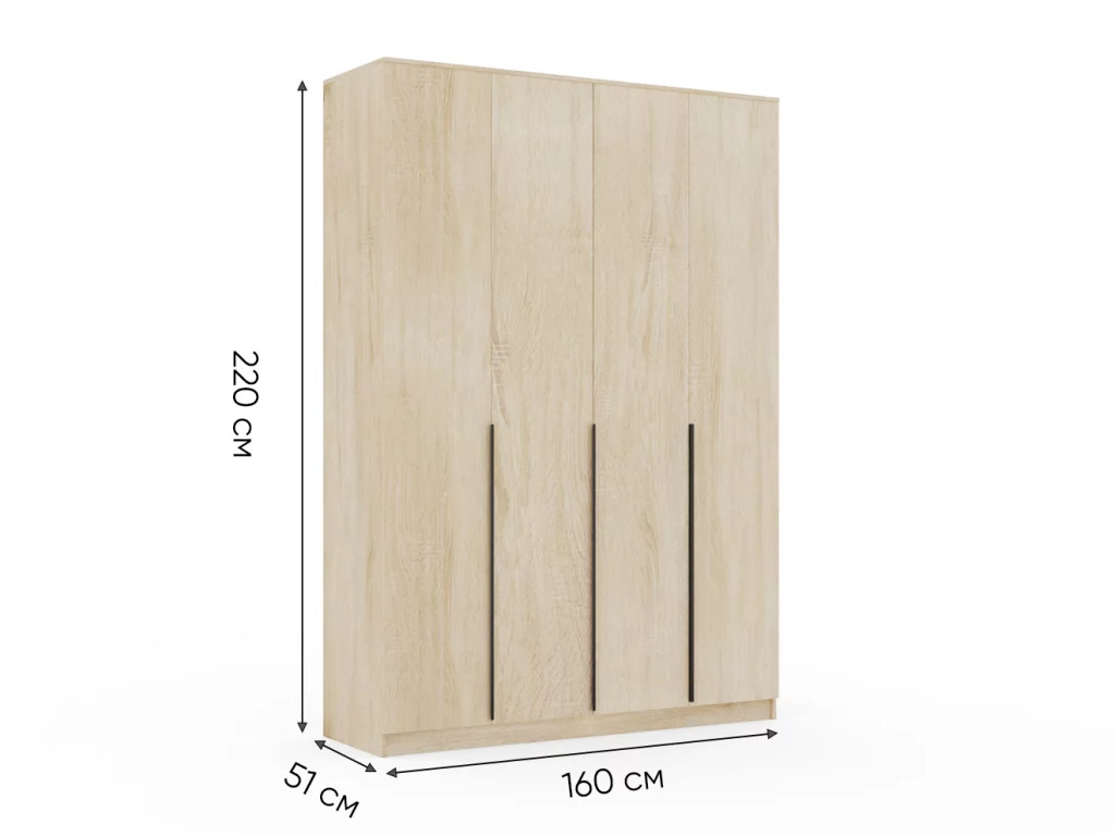 - Шкаф Монблан New распашной 1600 4-х дверный Дуб сонома