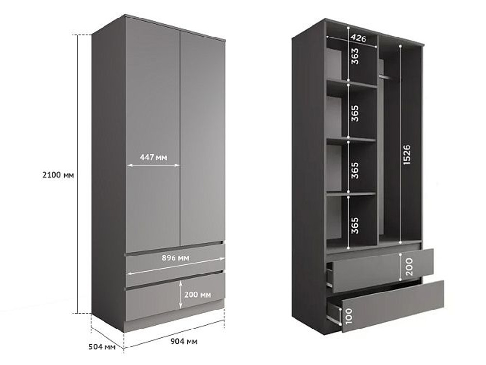Шкаф Мори МШ900.2 с двумя ящиками графит