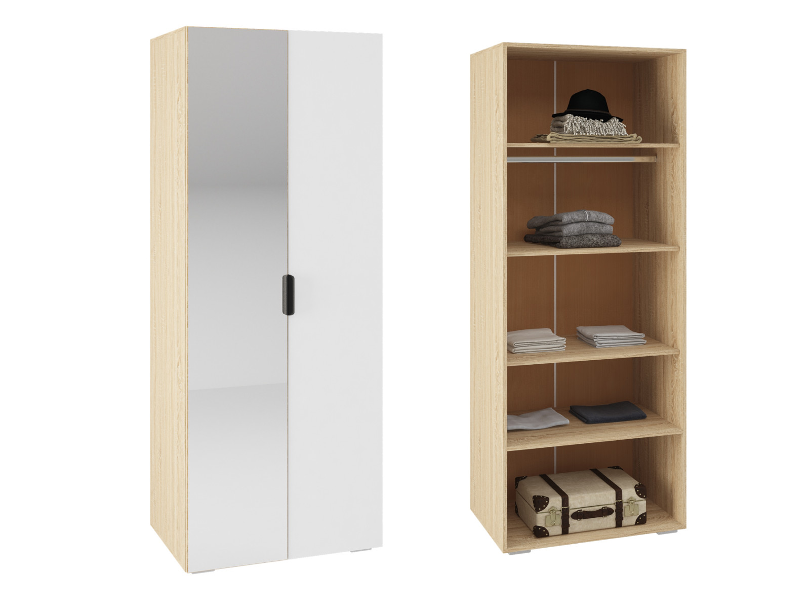 - Шкаф Норд ШК-800 1 дверь с зеркалом дуб сонома/белый