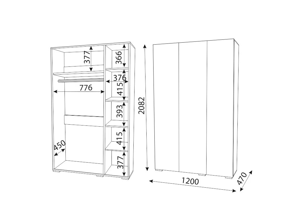 Размеры (ШхГхВ): 1200x470x2082 мм